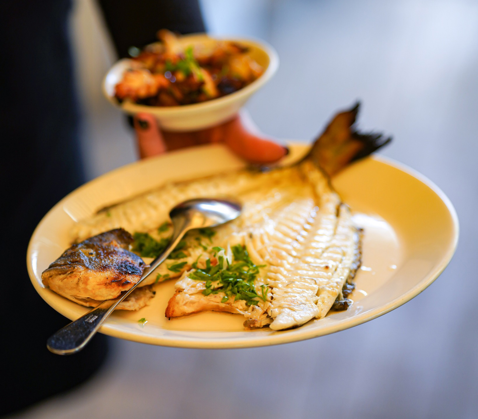 Εδώ η εμπειρία δεν είναι ό,τι περιμένεις από ένα εστιατόριο με consultant σεφ. Η open kitchen του Αθηναγόρα Κωστάκου είναι βαθιά νόστιμη και ελαφριά. Υπέροχος ταραμάς και τζατζίκι με αβοκάντο, η κροκέτα μουσακά κρύβει όλη τη γεύση του πιάτου σε μια τραγανή μπουκιά, δροσερή η αγγουροσαλάτα με φρέσκο κολοκύθι, μελωμένο γιουβέτσι γαρίδας και τάκος με γύρο. Η δυνατότητα για μισή μερίδα σχεδόν σε όλα τα πιάτα δίνει πολλά και διαφορετικά sharing, τιμώντας την παράδοση της ελληνικής κουζίνας. Τα κοκτέιλ από τη βραβευμένη ομάδα του αθηναϊκού The Clumsies προσθέτουν μια ξεχωριστή διάσταση, ενώ η μπουγάτσα με βούτυρο και σος dulce de leche, ψήνεται εκείνη την ώρα και κλείνει το γεύμα συναρπαστικά.