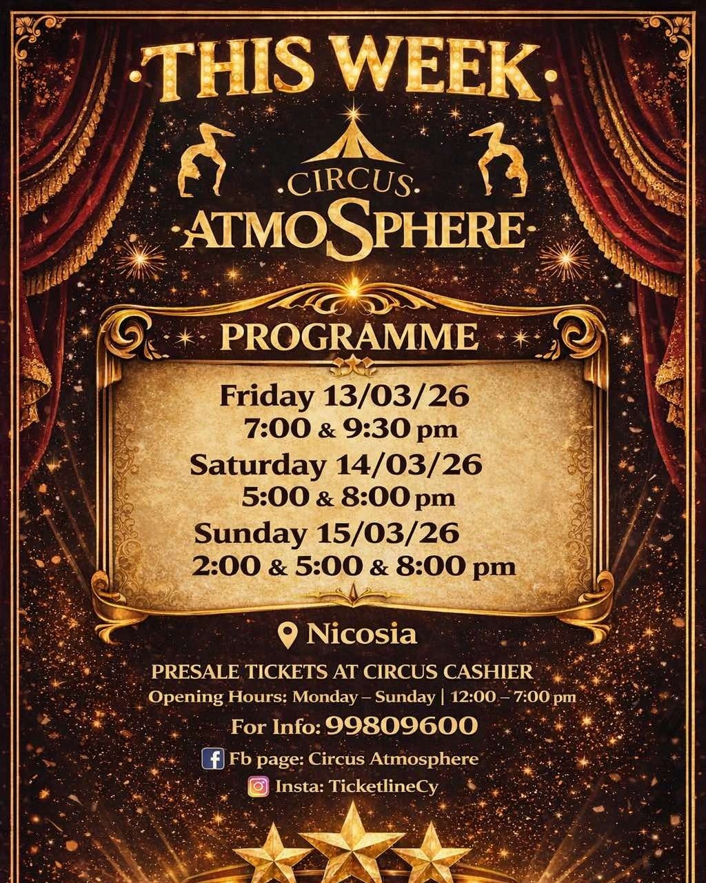 Το Circus Atmosphere έρχεται στη Λευκωσία με ένα εντυπωσιακό σόου γεμάτο ακροβατικά, γέλιο, μουσική και μαγικές στιγμές για μικρούς και μεγάλους!