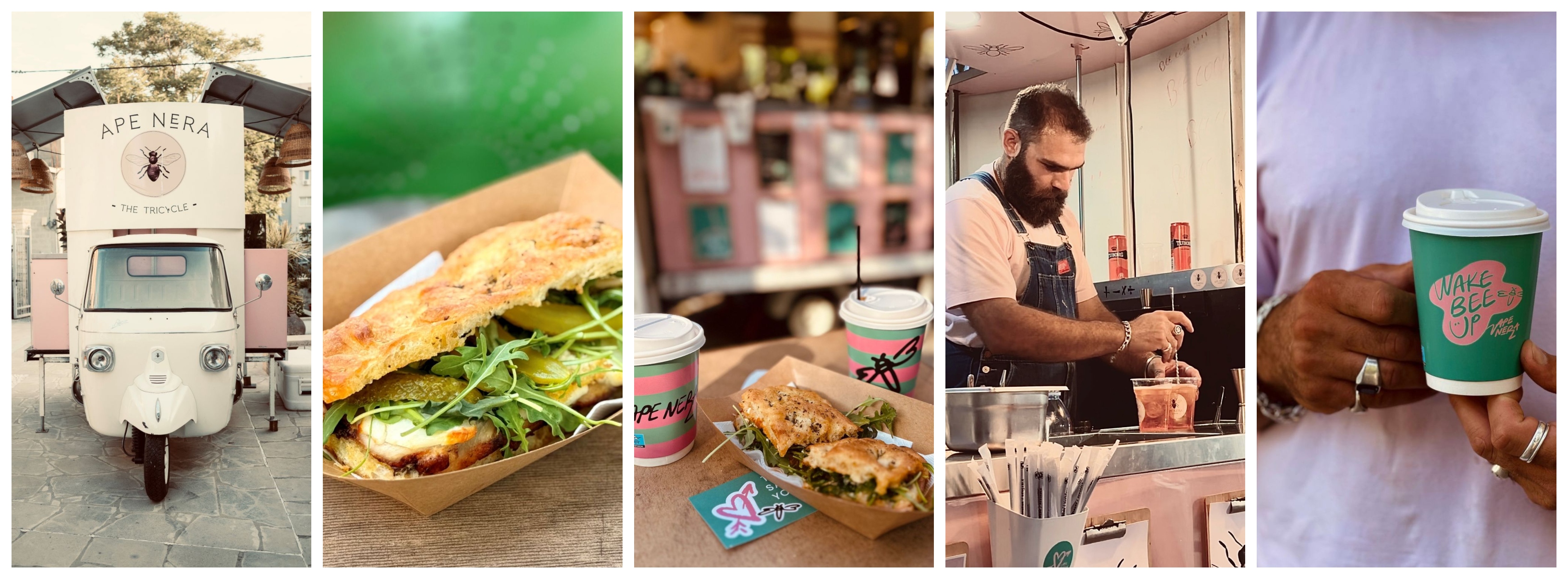 Εδώ και περίπου 3 χρόνια, ο Δημήτρης, αφού αναπαλαίωσε full μια από τις κλασσικές βέσπες του, και συγκεκριμένα την Ape, που αποτελεί την τρίκυκλη εκδοχή, ακολούθως στήθηκε σε έναν από τους πιο κεντρικούς δρόμους της πόλης, στην Λεωφ. Αρχ. Μακαρίου, προσφέροντας όλα τα είδη espresso. Το μενού προσφέρει επίσης λεμονάδες, φρέσκους χυμούς, σοκολάτες και cold brew teas, ενώ θραύση κάνουν και τέσσερα είδη focaccia sandwich: Angry Toast, The King Prosciutto, Roast Haloumi και Vegan. Εκτός από τους κλασσικούς espresso καφέδες, φτιάχνει επίσης signature Lattes (Πράσινο, Κίτρινο, Μπλε, Ροζ, Καφέ), signature Mochas, ενίοτε και κοκτέιλ (στα events που πηγαίνει), ενώ γενικά φέρνει ιταλικό αέρα στο νησί και αυτό μας αρέσει.