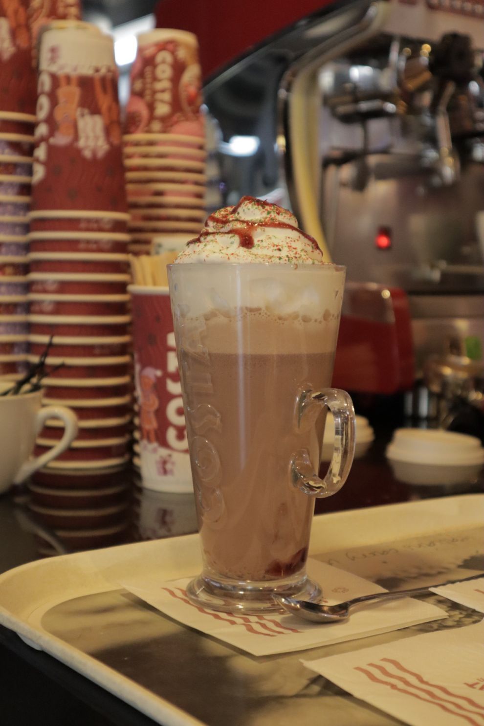 Μια πλούσια, βελούδινη ζεστή σοκολάτα που συνδύαζε αρμονικά την έντονη γεύση κακάο με διακριτικές νότες κερασιού. Θύμιζε αγαπημένο Black Forest γλυκό.