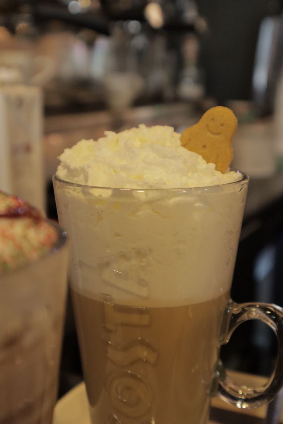Ένα ζεστό, αρωματικό latte με τη χαρακτηριστική, γλυκιά και πικάντικη γεύση gingerbread. Με τη σαντιγί να λιώνει απαλά από πάνω, το ρόφημα ήταν πραγματικά μαγικό και άκρως εορταστικό.