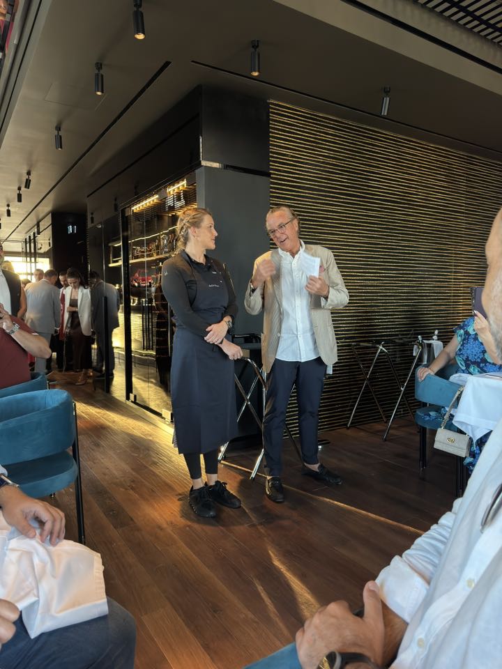 Στην κουζίνα συναντήσαμε την Julia Komp, τη νεότερη Γερμανίδα σεφ που έχει βραβευτεί με αστέρι Michelin, η οποία παρουσίασε το πολυεπίπεδο tasting menu “The Julia Komp Experience”. Ένα ταξίδι που ξεκινά από τη Μεσόγειο και φτάνει μέχρι την Ιαπωνία, την Ταϊλάνδη και τη Λατινική Αμερική, μέσα από έξι δημιουργικά πιάτα με έντονα αρώματα και εκλεπτυσμένη αισθητική.