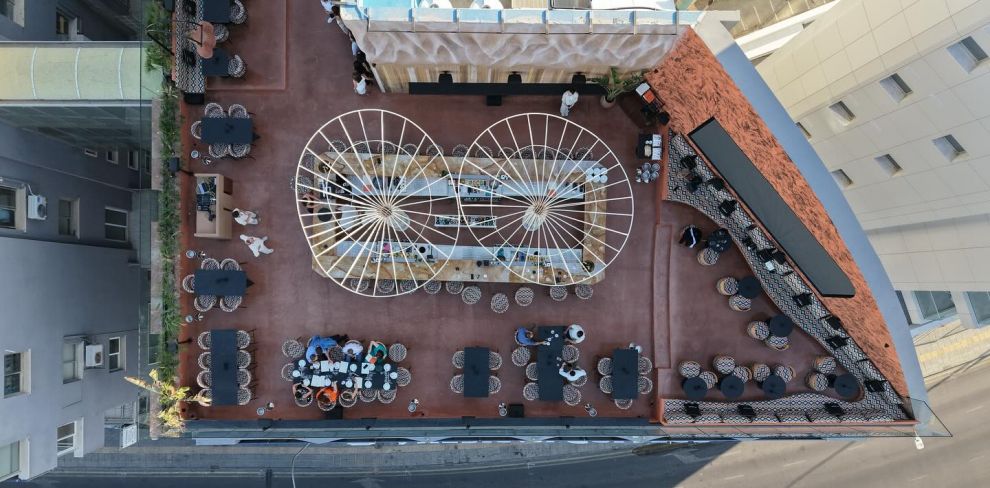 Open air bar restaurant στον 7ο όροφο του Μεγάρου Χατζησάββα. Με τη θέα της Λευκωσίας σε πρώτο πλάνο και γοητευτική ατμόσφαιρα, εδώ θα απολαύσεις δροσιστικά signature κοκτέιλ επιμελημένα από τον Βάκη Σταυρή, και νόστιμα πιάτα δημιουργικής κουζίνα από τον σεφ Άγγελο Μπακόπουλο με chill out μουσική σε ένα από τα πιο ειδυλλιακά roof της πρωτεύουσας.