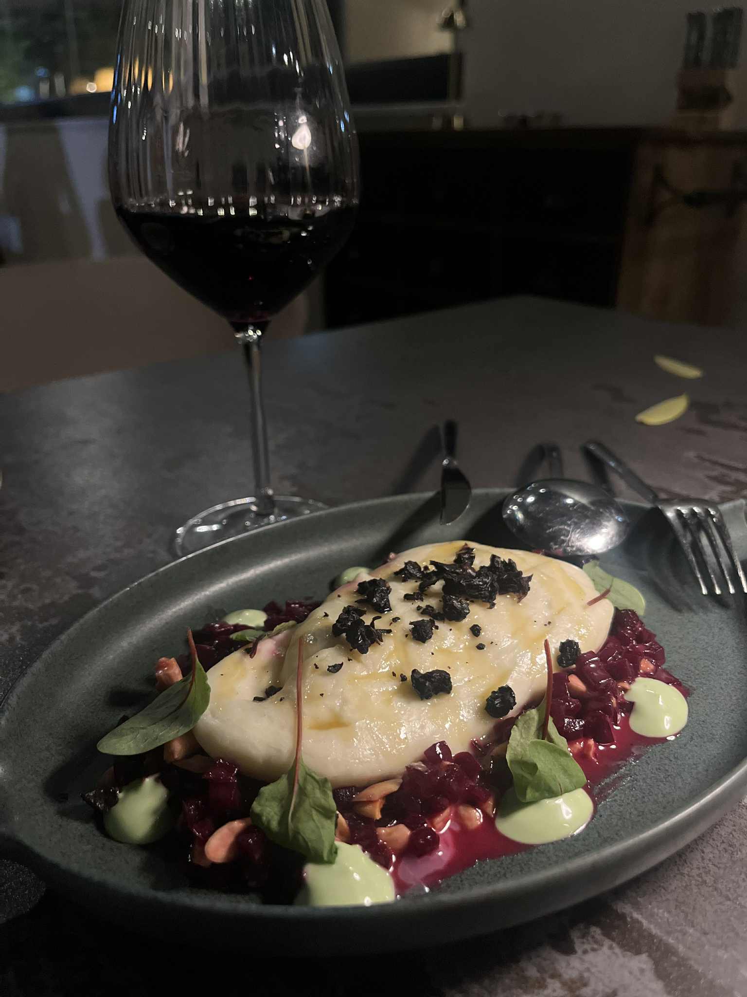 Στο νέο μενού τους Ρους, το οποίο εδώ και μερικές βδομάδες λειτουργεί στο κέντρο της πόλης, ο πολύ ταλαντούχος σεφ Τριαντάφυλλος Σουλιώτης, μας δίνει την ευκαιρία να το γευτούμε Ποσέ, μαζί με ταρτάτ παντζαριού, καπνιστά αμύγδαλα, τραγανή μαύρη ελιά και σως καμένου μελιού. Ένα πιάτο πολύ ιδιαίτερο και πολύ πλούσιο σε εντάσεις και υφές.