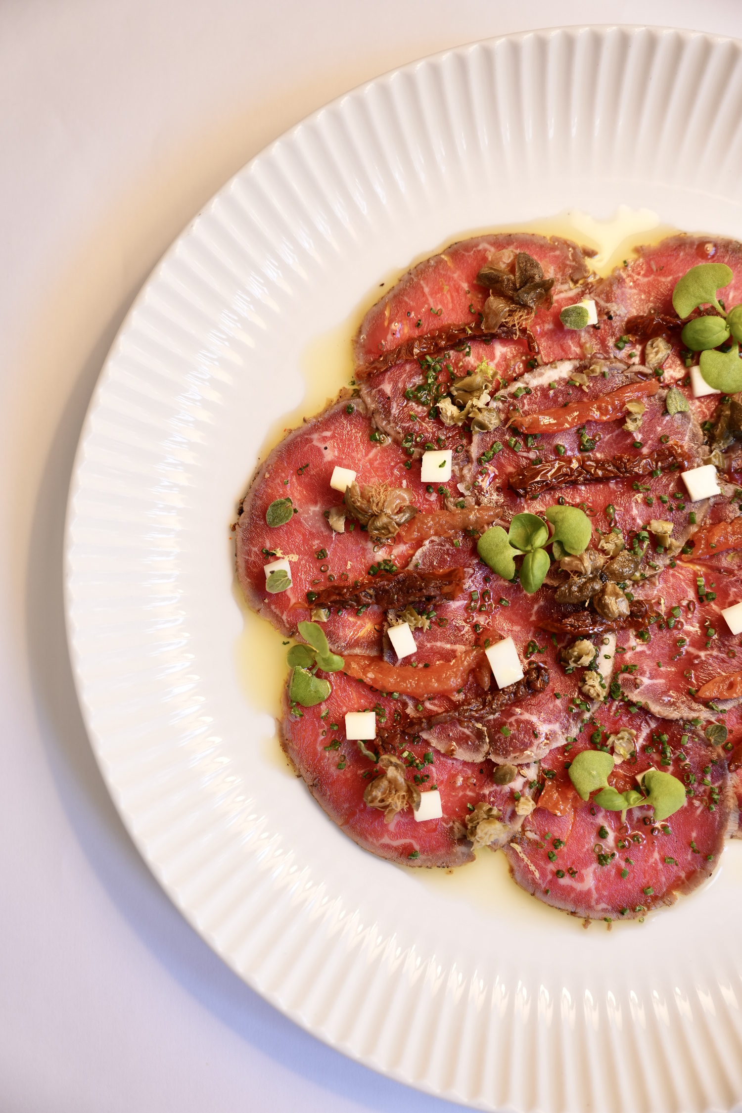Στο The Polo, το Καλύτερο Εστιατόριο της Κύπρου, σύμφωνα με τα Wiz 50 Best Restaurants, μεταξύ άλλων μπορείτε να απολαύσετε ένα εκλεπτυσμένο πιάτο, ένα υπέροχο σε γεύση και παρουσίαση Beef carpaccio, το οποίο γευστικά συμπληρώνεται από υλικά όπως ντομάτες κονφί, φρέσκια ρίγανη, κάπαρη αλλά και χαλλούμι. Ένας μοναδικός συνδυασμός τοπικών και γκουρμέ υλικών, τον οποίο εμπνεύστηκε και δημιούργησε ο σπουδαίος σεφ Παύλος Κυριάκης, που αναμφισβήτητα προσφέρει μια αξέχαστη γευστική εμπειρία που συνδυάζει τέλεια την παράδοση με την καινοτομία.