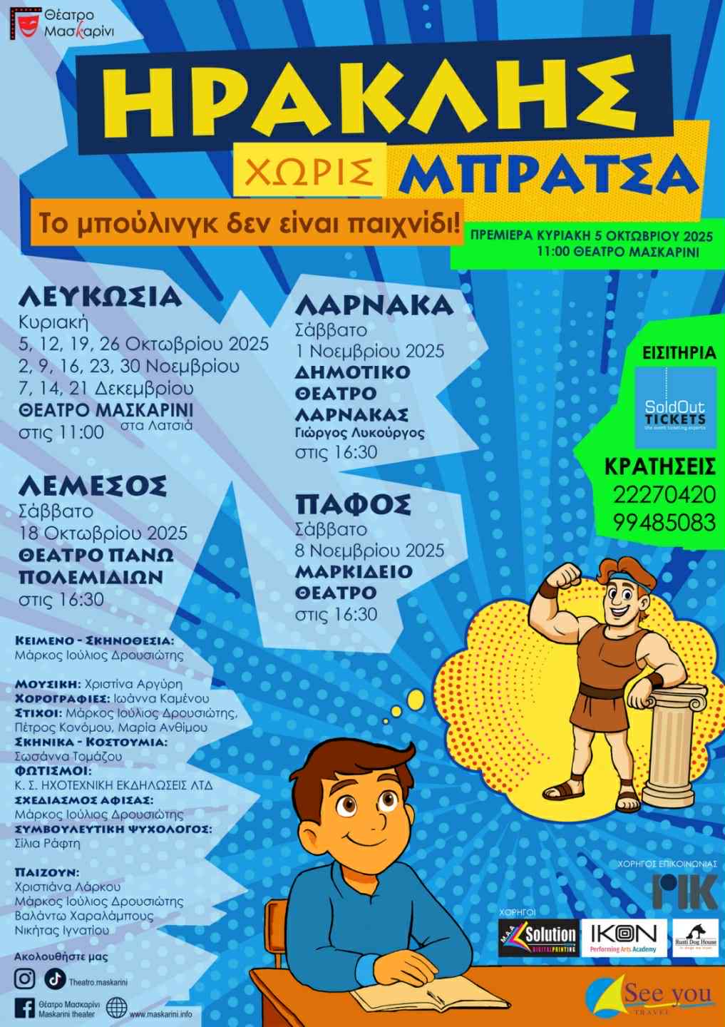 Πληροφορίες και κρατήσεις: 22270420, 99528174, 99485083