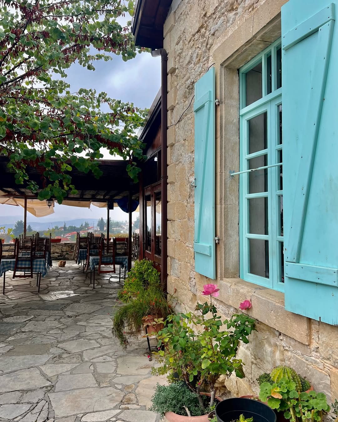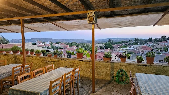 Ο κύριος Μαρίνος προσφέρει νόστιμη κυπριακή κουζίνα από ντόπια υλικά, δικής τους παραγωγής όπου είναι δυνατό. Τον χειμώνα περνάμε ευχάριστα στον εσωτερικό χώρο της ταβέρνας, με την ξυλόσομπα να ζεσταίνει τη σάλα, ενώ το καλοκαίρι τα τραπεζάκια γεμίζουν το ευρύχωρο μπαλκόνι που έχει θέα ολόκληρο το χωριό και τους αμπελώνες, με τον ορίζοντα να εκτείνεται ως τη θάλασσα της Πάφου (περιοχή αεροδρομίου). Ωραία μαγειρευτά και δυνατή σχάρα, με σπεσιαλιτέ του μαγαζιού το κουνέλι στιφάδο και τους γεμιστούς ανθούς. Αξίζει να αναφέρουμε ότι η ταβέρνα στεγάζεται σε ένα κομμάτι του παλιού δημοτικού σχολείου!