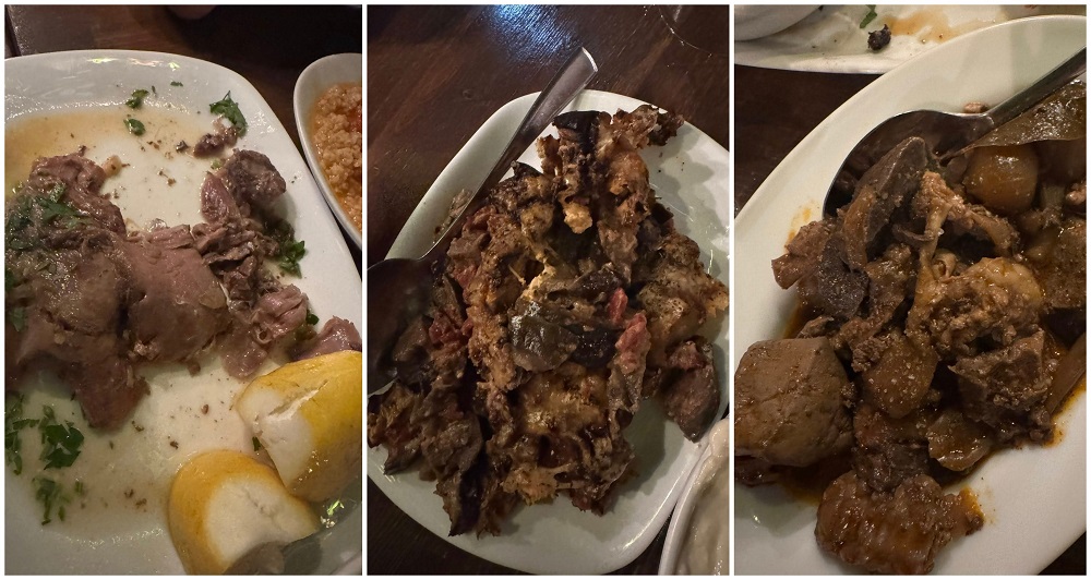 Ακολούθησε μια πιατέλα με οφτό κλέφτικο – λουκούμι, μελιτζάνες με αυγά, ραβιόλες χωριάτικες και τηγανητές πατάτες. Τις τελευταίες είχαμε ζητήσει λίγο νωρίτερα για να συνοδεύσουν το κλέφτικο, αλλά τελικά δεν ήταν εφικτό. Εντούτοις, ήταν νόστιμες και καλοτηγανισμένες. Στο τραπέζι ήρθαν ακόμη σεφταλιές, ψητό κοτόπουλο και συκωτάκι, που έκλεισε το γεύμα μας, έστω κι αν δοκιμάστηκε οριακά από την πληρότητα.