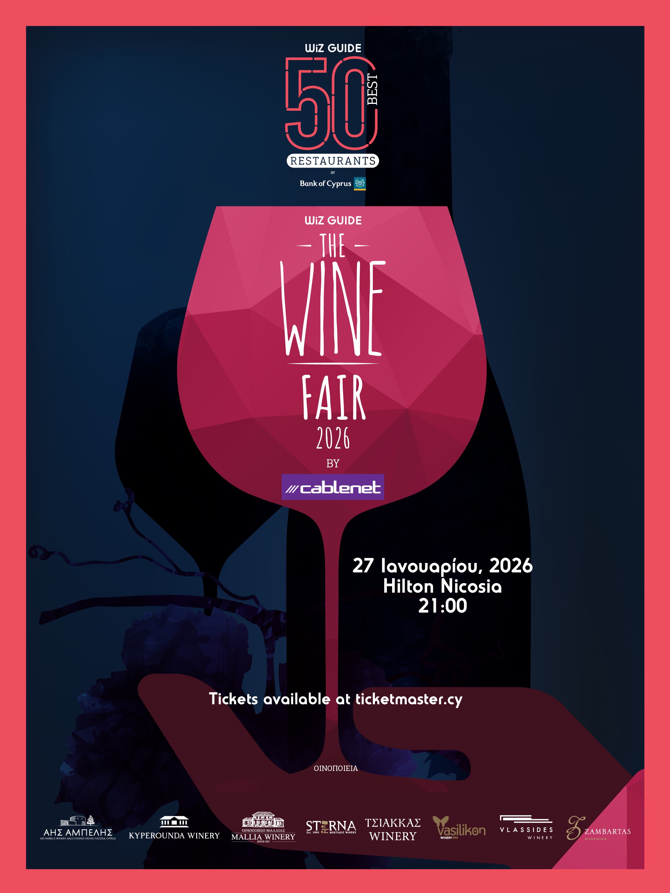Wiz Wine Fair 2026 by Cablenet, την Τρίτη 27 Ιανουαρίου 2026, στις 9μμ, στο ξενοδοχείο Hilton Λευκωσίας.