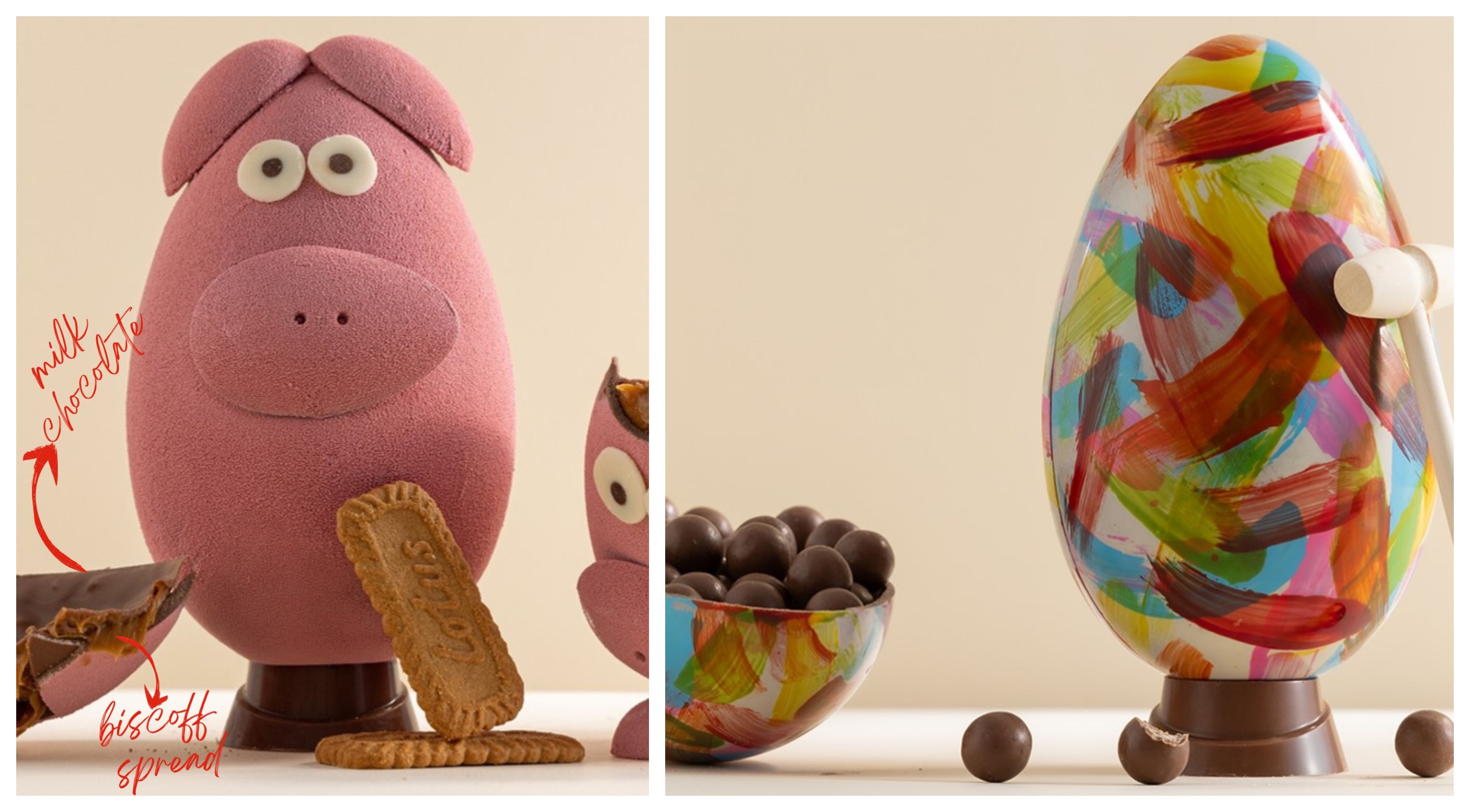 Το Choco King στη Δερύνεια προτείνει ωραία αυγά, όπως για παράδειγμα αυτό με γέμιση biscoff spread, ή το άλλο που είναι γεμάτο με Maltesers.