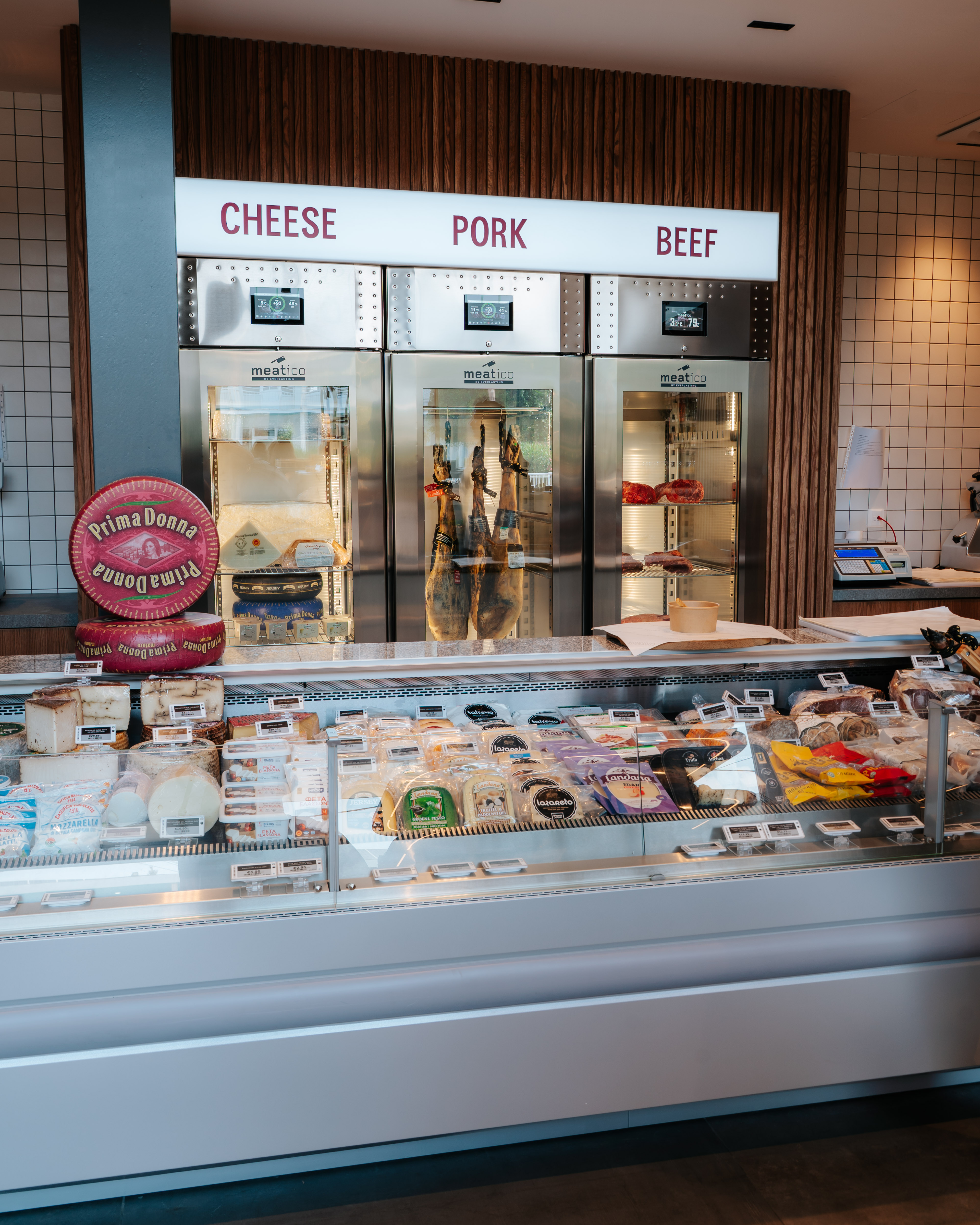 Προχωρώντας εντός του χώρου, χαρακτηριστικό είναι το σημείο με τα delicatessen. Κλασσικές άλλα και ιδιαίτερες γεύσεις, υψηλής ποιότητας τυριών, από Ολλανδία και Ιταλία, όπως επίσης φρεσκοκομμένα, πλούσια σε άρωμα και γεύση, αλλαντικά.