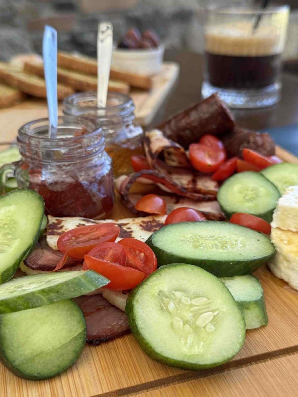 Στις επιλογές του μενού θα βρεις το Cypriot Benedict, το Halloumi & Avocado Toast, το Cypriot Shakshuka, η Veggie Omelette, το Κυπριακό Σάντουιτς, το Club Sandwich και φυσικά το Κυπριακό Brunch «Το Δυμιώτικο». Εκτός από αυτά, στο section με τα επιδόρπια υπάρχουν τα Praline Pancakes, Bourekia Pancakes και Panna Cotta Mahalepi.