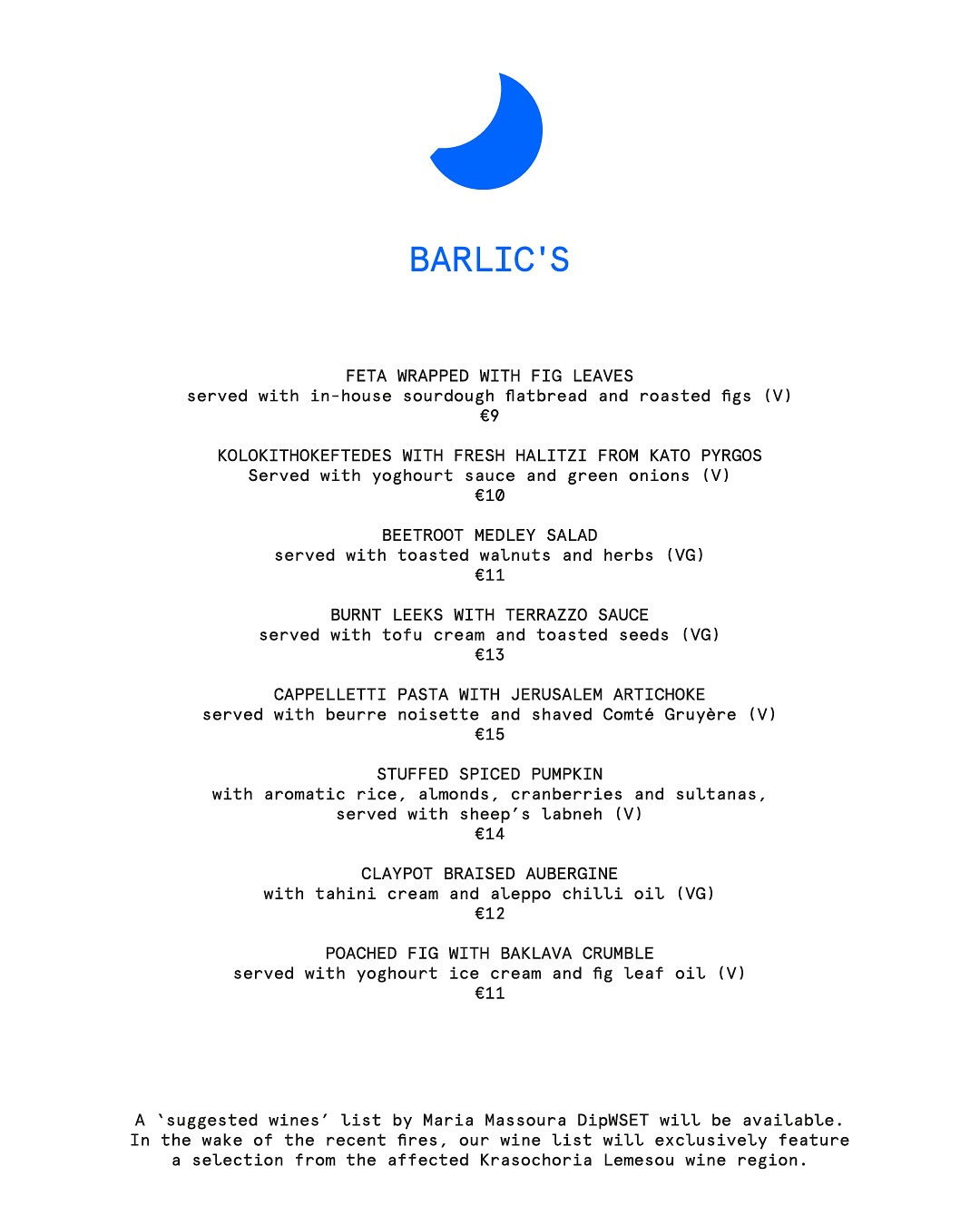 Σε σχέση με το Barlic’s, όπως έχουμε γράψει ξανά πρόσφατα, η ταλαντούχα ιδιοκτήτρια και σεφ Χλόη Σταύρου προσφέρει μια εμπειρία πολύ ξεχωριστή για τα κυπριακά γαστρονομικά δεδομένα. Πρόκειται ουσιαστικά για ένα pop up μαγειρικής, στο πλαίσιο του οποίου οι φιλοξενούμενοι μπορούν να απολαύσουν πολύ ιδιαίτερες γεύσεις, με πιάτα δημιουργημένα από εποχικά προϊόντα και με τη λογική του low waste, συνδυασμένα πάντα με κρασιά που επιλέγει η wine director Μαρία Θ. Μασούρα, DipWSET (η οποία θα φροντίσει τη λίστα και στο επερχόμενο διήμερο με την Katalanos).