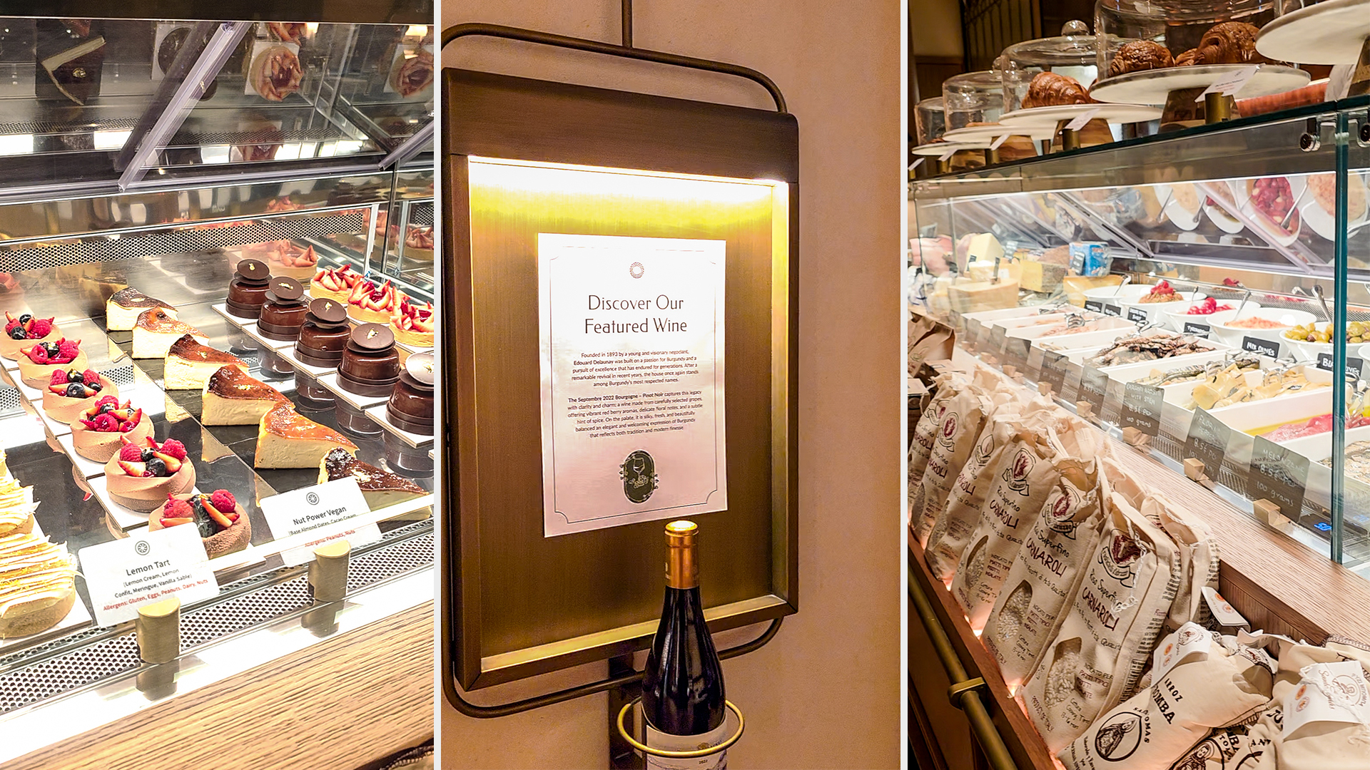 Παράλληλα, το υπέροχο wine cellar αναμένεται να εξελιχθεί σε έναν από τους πλέον ζωντανούς προορισμούς της πόλης με οινογνωσίες, wine flights και guests από διάσημα οινοποιεία να διοργανώνονται εδώ. Στον εξειδικευμένο retail χώρο και το πλούσιο delicatessen οι επισκέπτες βρίσκουν μία τεράστια ποικιλία από artisanal προϊόντα, από ελαιόλαδο μέχρι σάλτσες, μία φινετσάτη συλλογή κρασιών, premium ποικιλίες καφέ και φυσικά ολόφρεσκα τυριά, αλλαντικά, pasta fresca, και μαριναρισμένα λαχανικά, για τη δημιουργία εξαιρετικών γευστικών εμπειριών στο σπίτι.