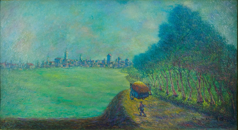Το Champ D’Avoine (Manner of Monet) (Estimate: € 10 000 - 20 000) αποτελεί μια εξαιρετική περίπτωση. H ποιότητα του έργου παραπέμπει σε πίνακες που έγιναν γύρω στο 1921 από ομάδα ζωγράφων που προσπάθησε να τους πλασάρει ως αυθεντικούς Μονέ. Το έργο φέρει την υπογραφή Claude Monet ’89. Αυτό, ωστόσο, δεν μειώνει την σημασία του συγκεκριμένου πίνακα ως ιστορικού έργου της «Σχολής Μονέ» από έναν άγνωστο καλλιτέχνη με βαθιά γνώση του έργου του σπουδαίου ιμπρεσσιονιστή. Στο Champ D’Avoine (Manner of Monet) το φως διαχέεται και ταυτόχρονα αιχμαλωτίζεται από την υγρή ατμόσφαιρα του έργου δημιουργώντας μια έκρηξη ζωντανού καθαρού χρώματος. Με παχύρευστες πινελιές ο ζωγράφος ξετυλίγει μια χρωματική πανδαισία όπου κυριαρχούν τα πράσινα φυλλώματα των δέντρων και αναμιγνύονται με τα πρασινογάλαζα χρώματα του ουρανού. Η πολιτεία στο βάθος μόλις που διακρίνεται περιλουσμένη στο ομιχλώδες φώς ενώ ταυτόχρονα φαντάζει περικυκλωμένη από αυτή την ακατάσχετη ροή του πράσινου που διανθίζεται έντονα από τις αποχρώσεις του κίτρινου και του γαλάζιου.