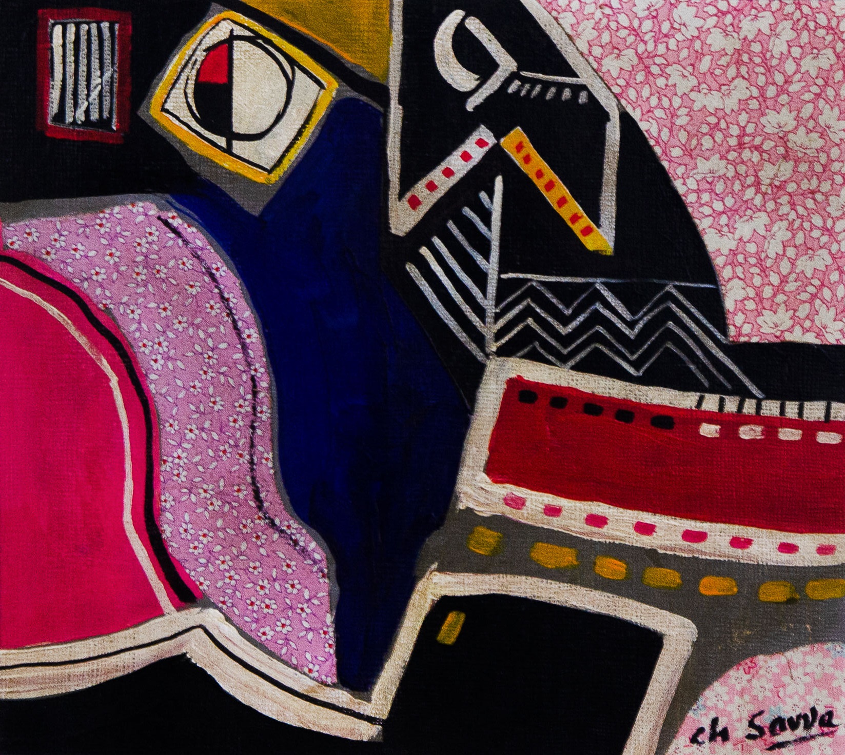 Ο Σάββα έχει την ικανότητα να οργανώνει αφαιρετικά τη σύνθεση με μια αξιοθαύμαστη λιτότητα. Στο έργο Abstract Composition V δομεί το χώρο με μικρά και μεγάλα ακανόνιστα σχήματα και μια πλούσια γκάμα από γαιώδη, μπλε, λευκά και κόκκινα δημιουργώντας έτσι μια συνεχή κίνηση. Η ρευστότητα του πλούσιου χρώματος και η χειρονομιακή ένταση με την οποία έχει απλωθεί στο καμβά προσδίδουν στο έργο μια μυστηριακή αίσθηση.