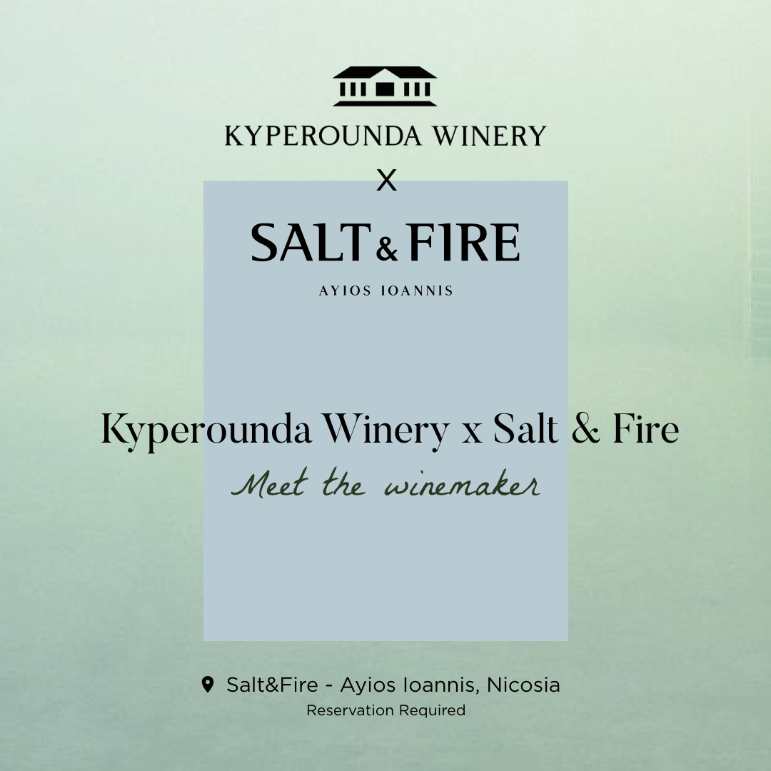 Το Salt & Fire και το Οινοποιείο Κυπερούντα ενώνουν τις δυνάμεις τους για μια ξεχωριστή γαστρονομική εμπειρία στο πλαίσιο της σειράς εκδηλώσεων "Meet the Winemakers", την Τρίτη 7 Οκτωβρίου 2025, στις 20:15.