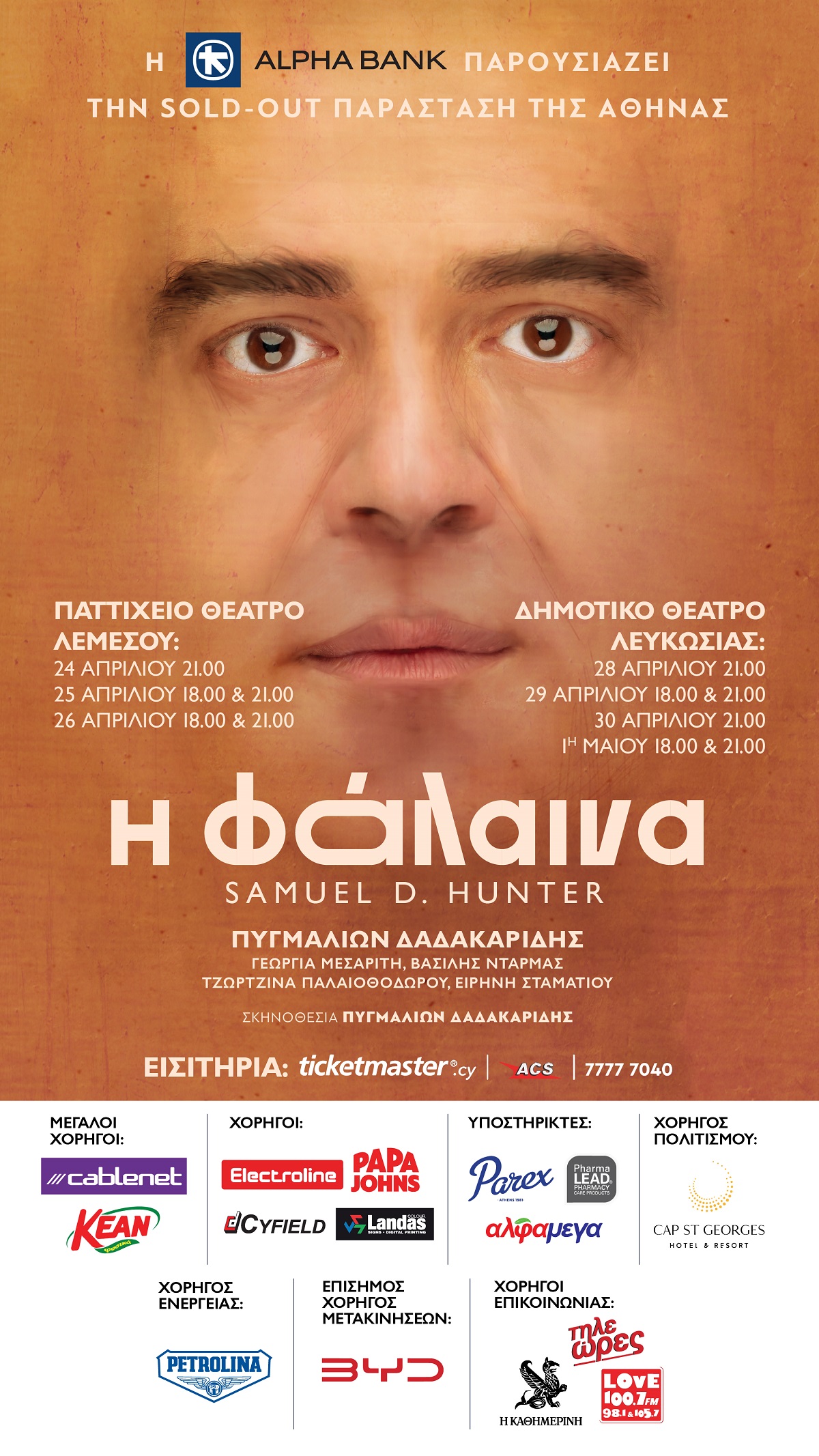 Οι ΕΙΔΙΚΕΣ ΠΑΡΑΓΩΓΕΣ φέρνουν για πρώτη φορά στην Κύπρο την παράσταση που συγκλόνισε κοινό και κριτικούς, με 300 συνεχόμενα sold out, σε σκηνοθεσία Πυγμαλίωνα Δαδακαρίδη, με τον ίδιο στον πρωταγωνιστικό ρόλο.