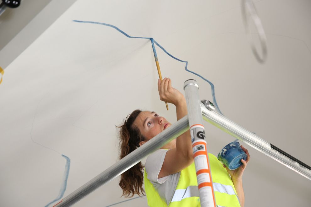 Το εντυπωσιακό αυτό έργο τέχνης καλύπτει ολόκληρη την οροφή με τα τέσσερα κοίλα μέρη της και εκτείνεται σε 206 τετραγωνικά μέτρα, ενώ είναι εμπνευσμένο από την κυπριακή κληρονομιά και αποτίνει φόρο τιμής στη μακρά και συναρπαστική ιστορία της πόλης. «Η εικαστική σύνθεση η οποία καλύπτει ολόκληρη την οροφή του Orangery αντικατοπτρίζει τη στενή σχέση της Λευκωσίας με το νερό, μία πολύτιμη πηγή ζωής. Με έμπνευση τις παραδοσιακές αυλές με τα πηγάδια και τα ρυάκια τους, όπου μέσα μεγάλωναν πορτοκαλιές, αυτό το έργο μεταμορφώνει αυτά τα στοιχεία που δίνουν ζωή σε γραμμές γεμάτες ροή. Αυτές οι φόρμες παραπέμπουν σε αρχαία κυπριακά μοτίβα, που κάποτε συναντούσαμε χαραγμένα σε κεραμικά σκευή και άλλα προϊόντα που οι κάτοικοι εξήγαγαν στην Μεσόγειο, ενώ ταυτόχρονα συμβολίζουν τις διαφορετικές ιστορίες και κουλτούρες που συναντώνται στη Λευκωσία, ένα «χωνευτήρι» πολιτισμών και ιστορίας. Το έργο προτρέπει τους επισκέπτες να αφήσουν τη φαντασία τους ελεύθερη, ενώ τιμά την έννοια της κοινότητας, της κληρονομιάς και του ποιητικού πνεύματος της κυπριακής φιλοξενίας», δηλώνει η καλλιτέχνιδα, η οποία ταξίδεψε μέχρι την Λευκωσία για πρώτη φορά στη ζωή της, προκειμένου να δημιουργήσει αυτό το μοναδικό έργο.