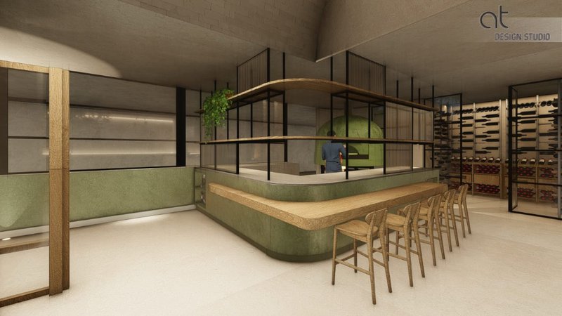 Εντύπωση στο νέο εστιατόριο στη Λευκωσία προκαλούν το ωραίο interior με τα γήινα χρώματα, τα εντυπωσιακά φωτιστικά, το bar και η walk-in κάβα, αλλά και ο ξυλόφουρνος που δεσπόζει στον χώρο.