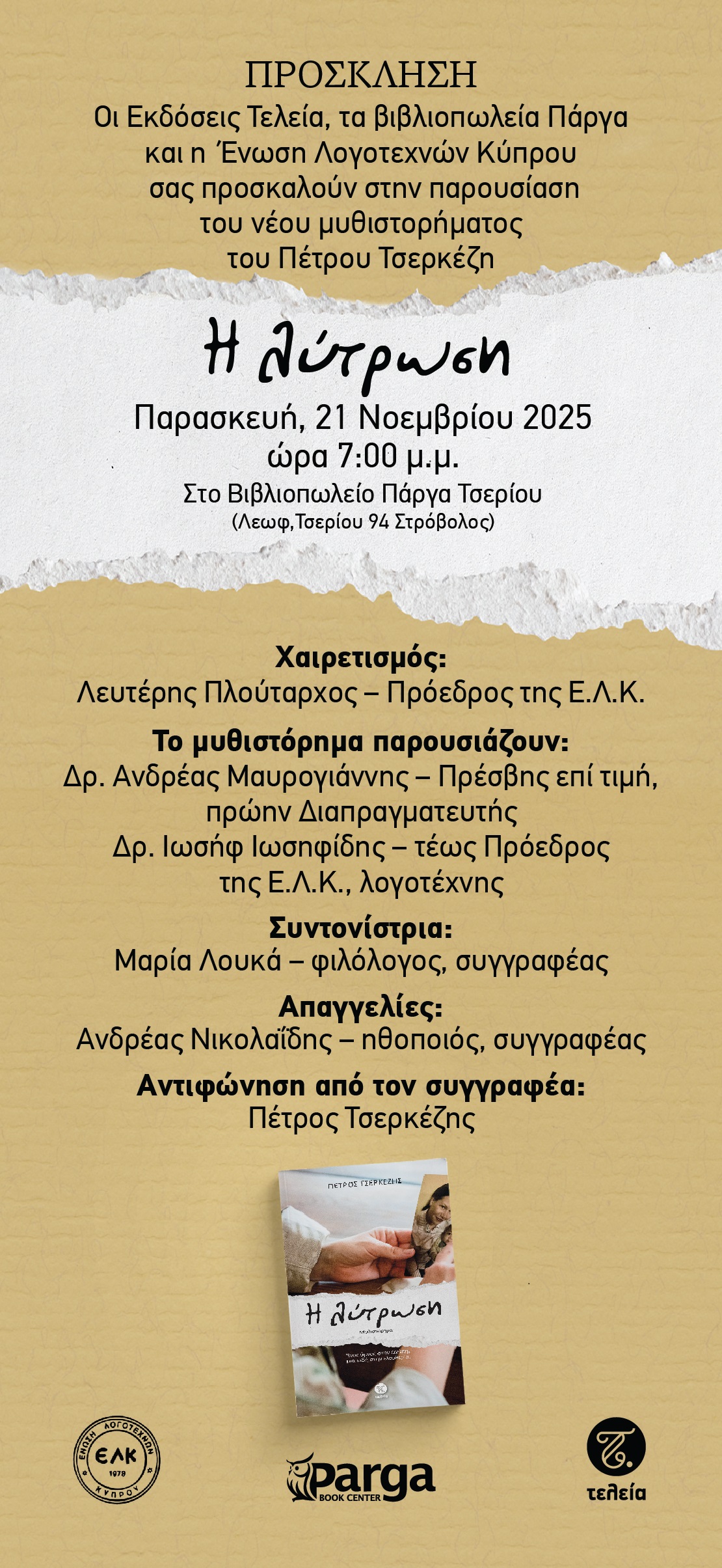 Κυκλοφόρησε το νέο μυθιστόρημα του συγγραφέα Πέτρου Τσερκέζη, «Η Λύτρωση», από τις εκδόσεις Τελεία.