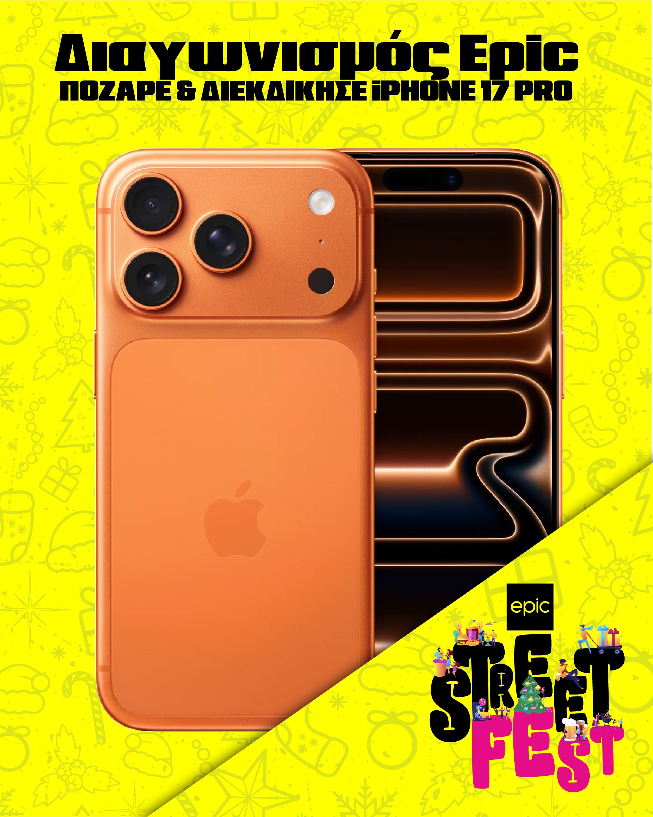 Από τις 17:00 και μετά, οι επισκέπτες θα έχουν την ευκαιρία να επισκεφθούν το περίπτερο της Epic και να ζήσουν μια ξεχωριστή εμπειρία φωτογράφησης σε ειδικά διαμορφωμένο AI photobooth, ποζάροντας για την πιο γιορτινή και πρωτότυπη φωτογραφία τους. Και όσοι ανεβάσουν την AI φωτογραφία τους σε Instagram Story, κάνοντας follow και tag @epicofficialcy, μπαίνουν αυτόματα στην κλήρωση του διαγωνισμού για να διεκδικήσουν το ισχυρό, ακαταμάχητο iPhone 17 Pro.