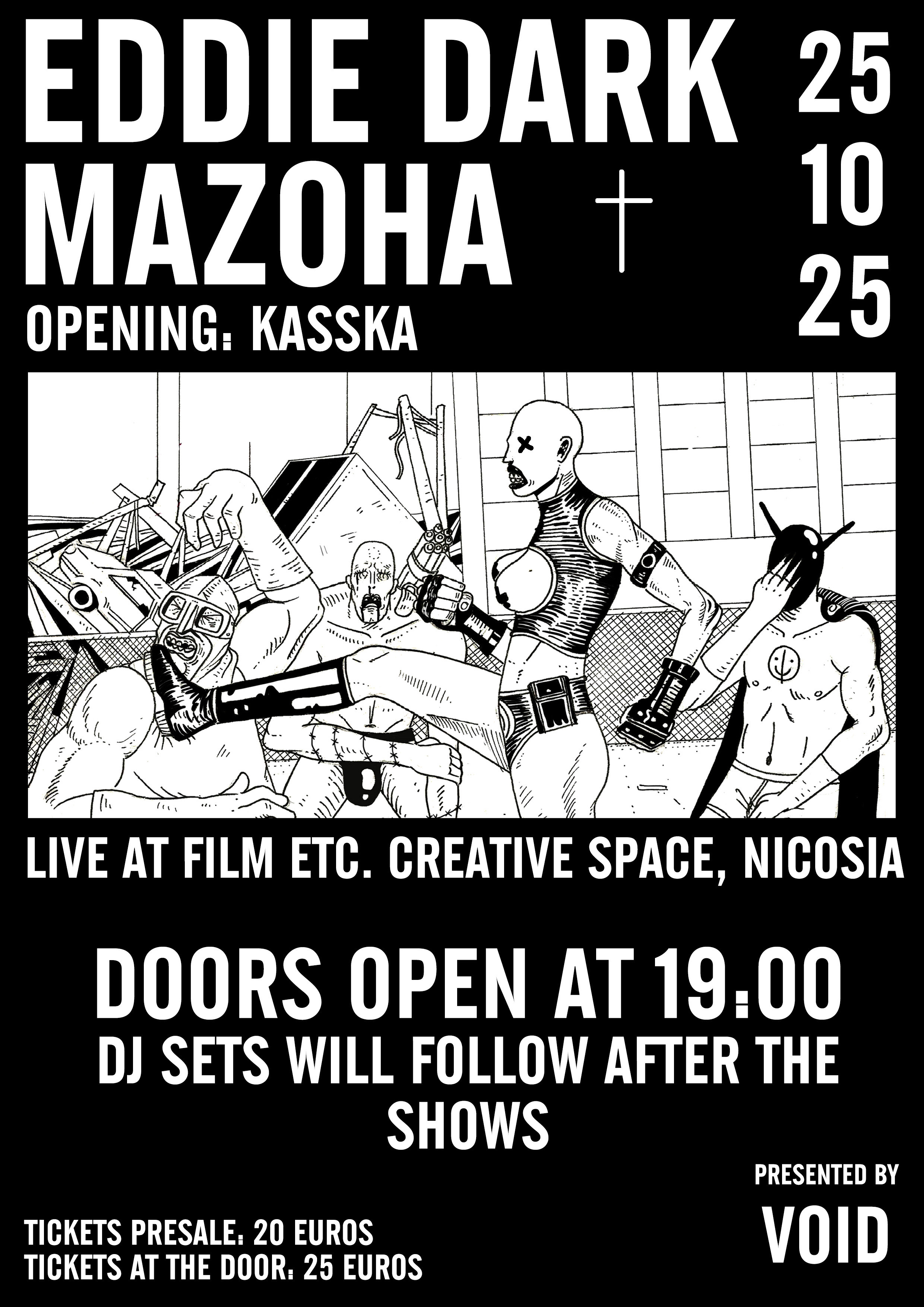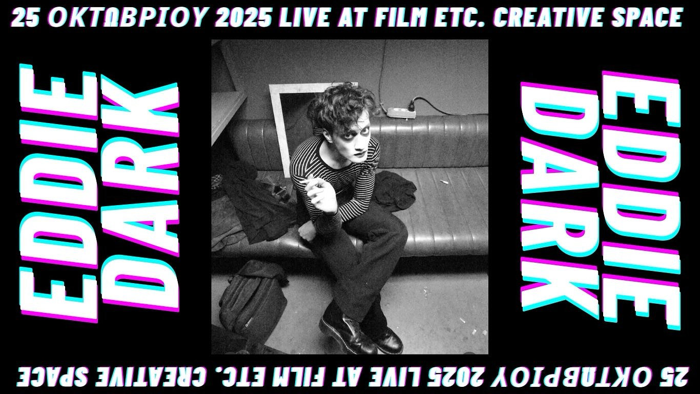 EDDIE DARK Το βαμπιρικό alter ego του Νικόλα Πετσίτη συνδυάζει την ενέργεια του old-school EBM με τη μελαγχολική ένταση της ελληνικής synth-punk σκηνής. Οι εμφανίσεις του είναι εκρηκτικές και απρόβλεπτες – μια βουτιά στις σκοτεινότερες πλευρές του electronic body music.