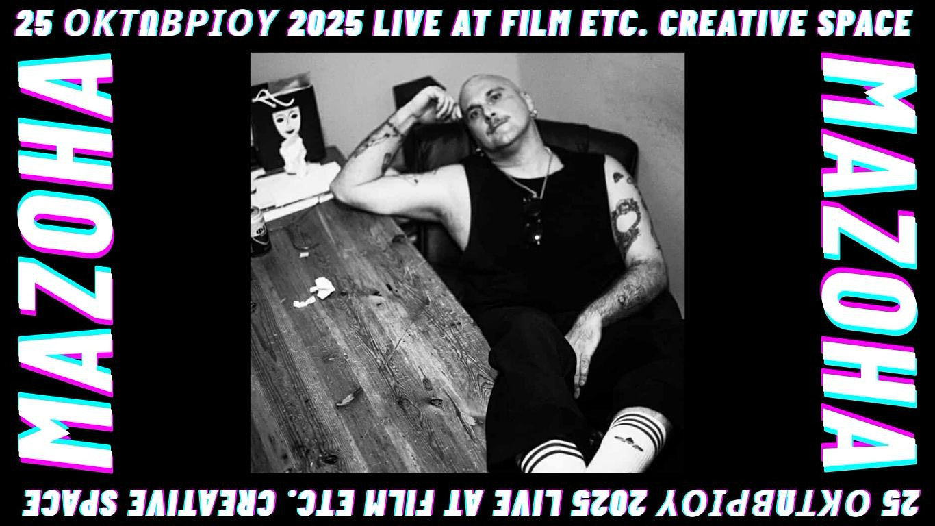 MAZOHA Από το 2017 μέχρι σήμερα, ο MAZOHA συνεχίζει να τροφοδοτεί το κοινό του με singles και albums. Βίαια τρυφερό synth punk από τη Θεσσαλονίκη που ισορροπεί ανάμεσα στον ρομαντισμό των ’80s και τον μηδενισμό των ’90s. Το όγδοο album του, ΛΑΪΚΟΝΙΚ, κυκλοφόρησε τον Ιούνιο του 2025.