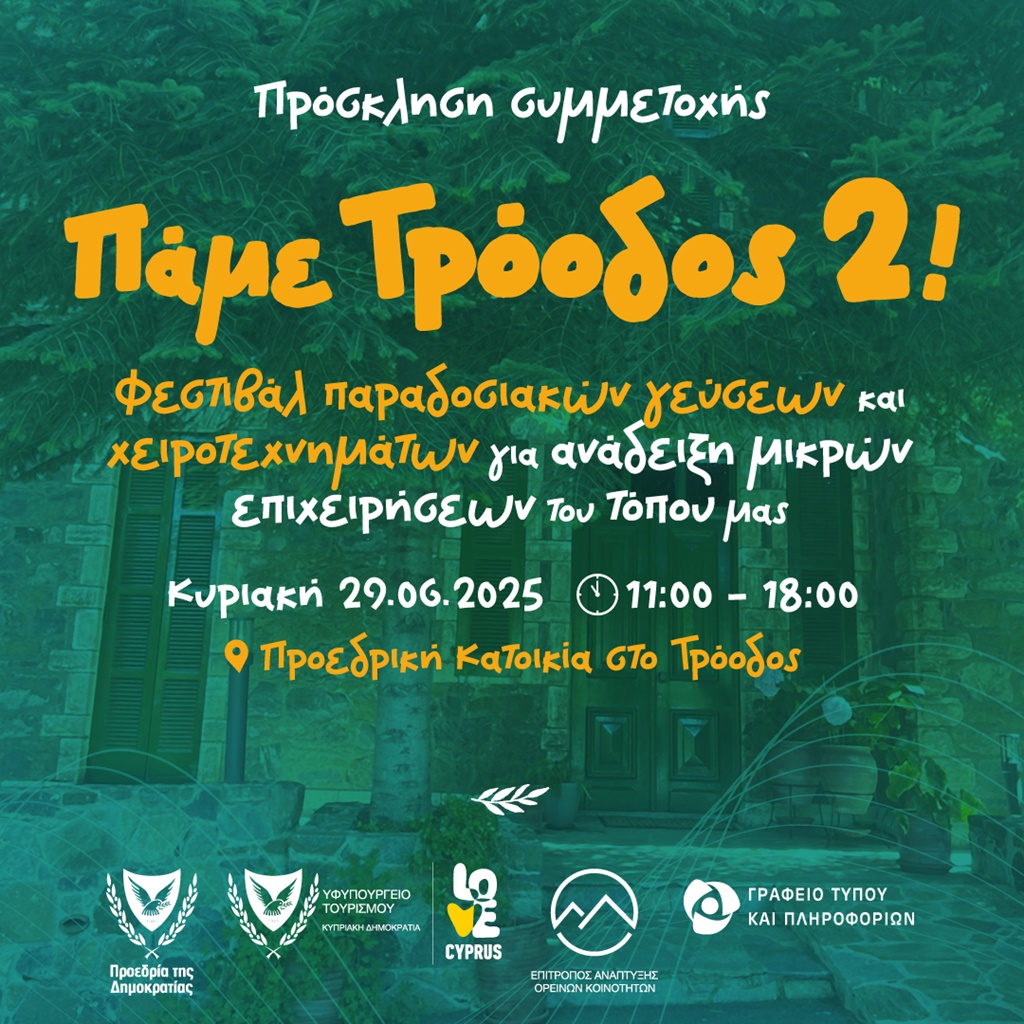Πάμε Τρόοδος 2! Φεστιβάλ Παραδοσιακών Γεύσεων και Χειροτεχνημάτων για ανάδειξη μικρών επιχειρήσεων του τόπου μας.