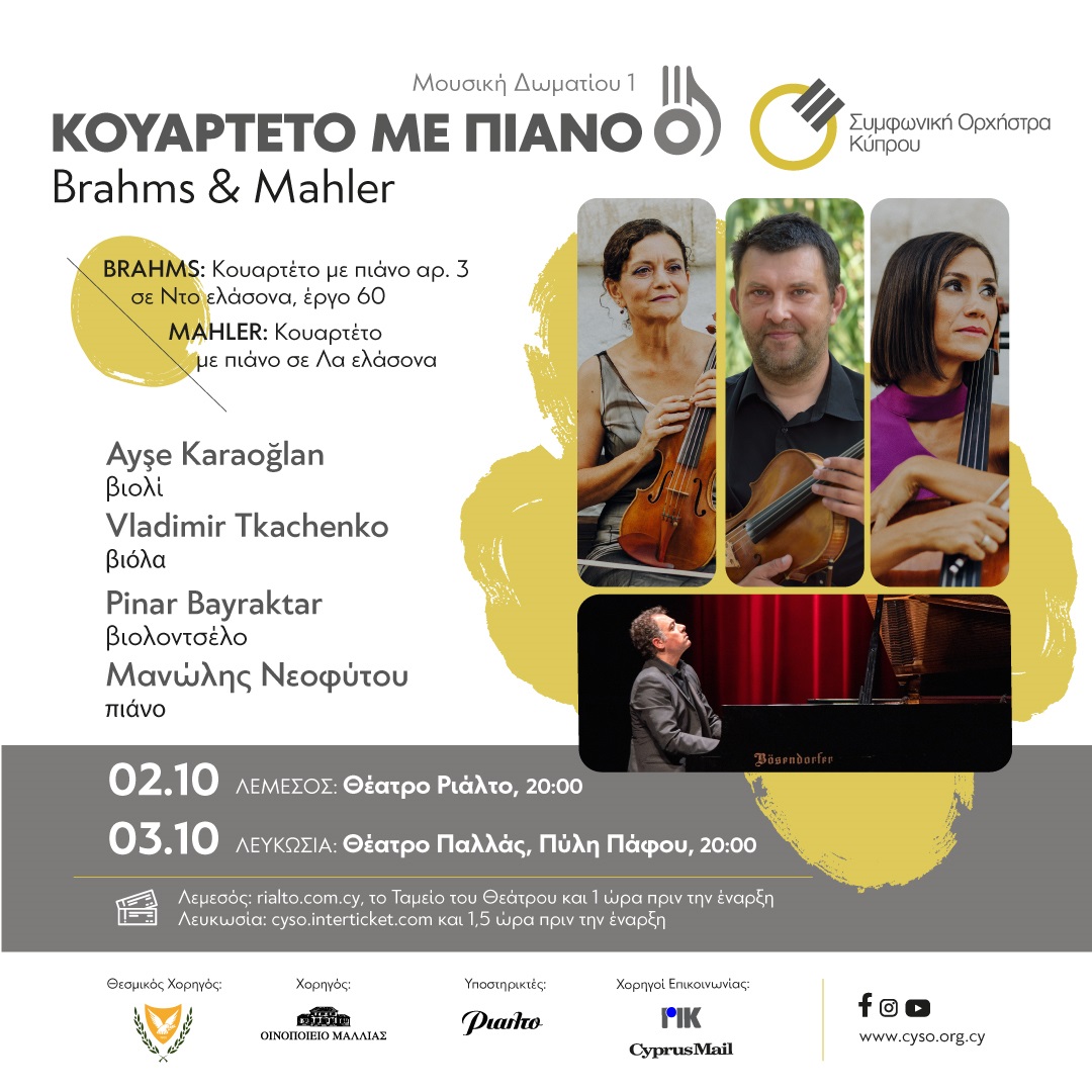 1. Μουσική Δωματίου 1 - ΚΟΥΑΡΤΕΤΟ ΜΕ ΠΙΑΝΟ: Brahms & Mahler