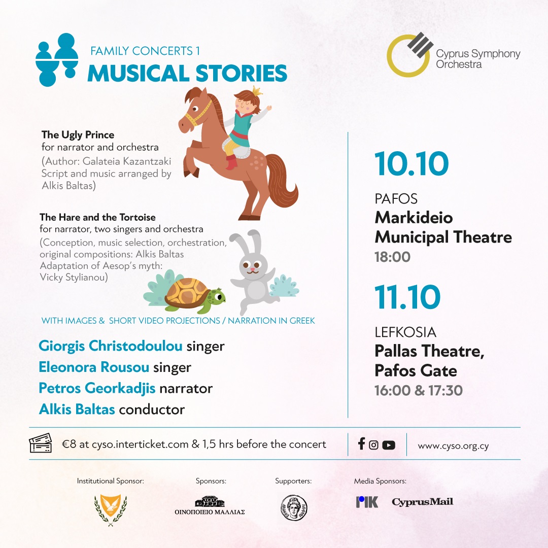 Ετοιμαστείτε για μια μαγική οικογενειακή συναυλία, όπου οι μικροί φίλοι της Ορχήστρας ταξιδεύουν στον κόσμο των παραμυθιών και της φαντασίας! Με οδηγούς τις υπέροχες φωνές του Γιώργη Χριστοδούλου και της Ελεονώρας Ρούσου, και τη Συμφωνική Ορχήστρα Κύπρου υπό τη διεύθυνση του Άλκη Μπαλτά, μουσική και αφήγηση ενώνονται με τον πιο συναρπαστικό τρόπο. Πρωταγωνιστές στο μουσικό μας ταξίδι τρεις αξέχαστοι ήρωες: ένας άσχημος πρίγκιπας, ένας σβέλτος λαγός και μια επίμονη χελώνα!