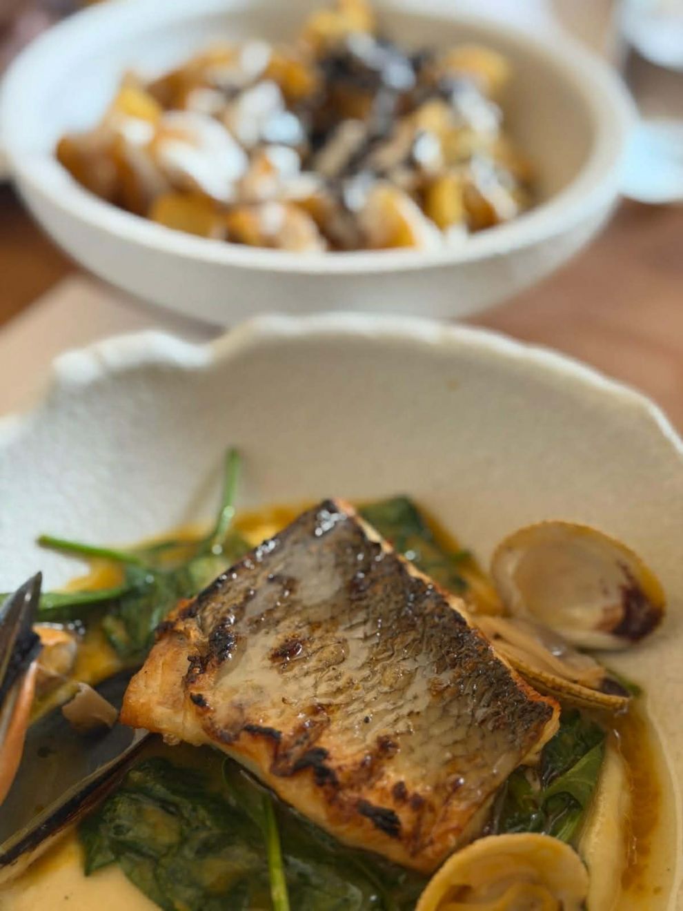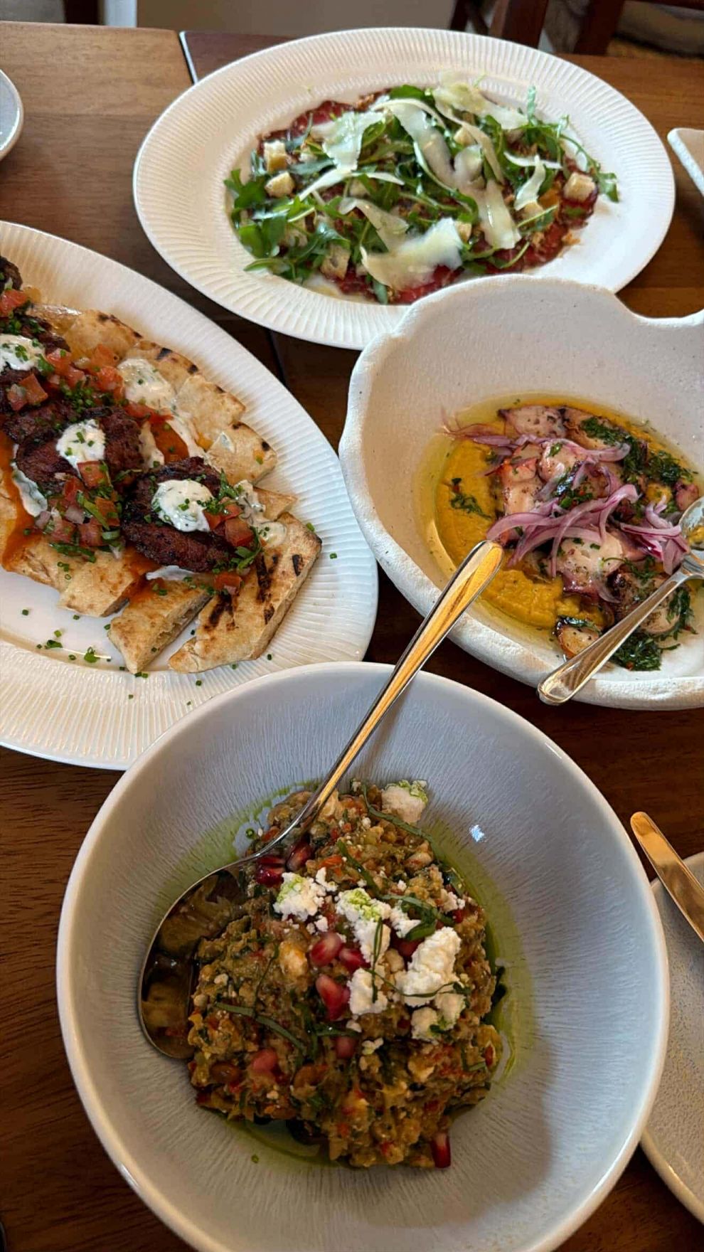 Συγκεκριμένα, το μενού προτείνει ωμά, σαλάτες, πιάτα to share, ορεκτικά, κυρίως πιάτα, επιλογές από ξυλόφουρνο, συνοδευτικά, πιάτα για τα παιδιά, αλλά και επιδόρπια. Ιδιαίτερη αναφορά αξίζει να γίνει στο φρέσκο ψάρι και τα θαλασσινά, με είδη όπως λαβράκι, ροφός, σφυρίδα, ασπρόβλαχος, μπαρμπούνι, όστρακα, γαρίδες κ.λπ., αλλά και στο γεγονός ότι το ψάρι ξεκοκαλίζεται πάντα μπροστά στον πελάτη.