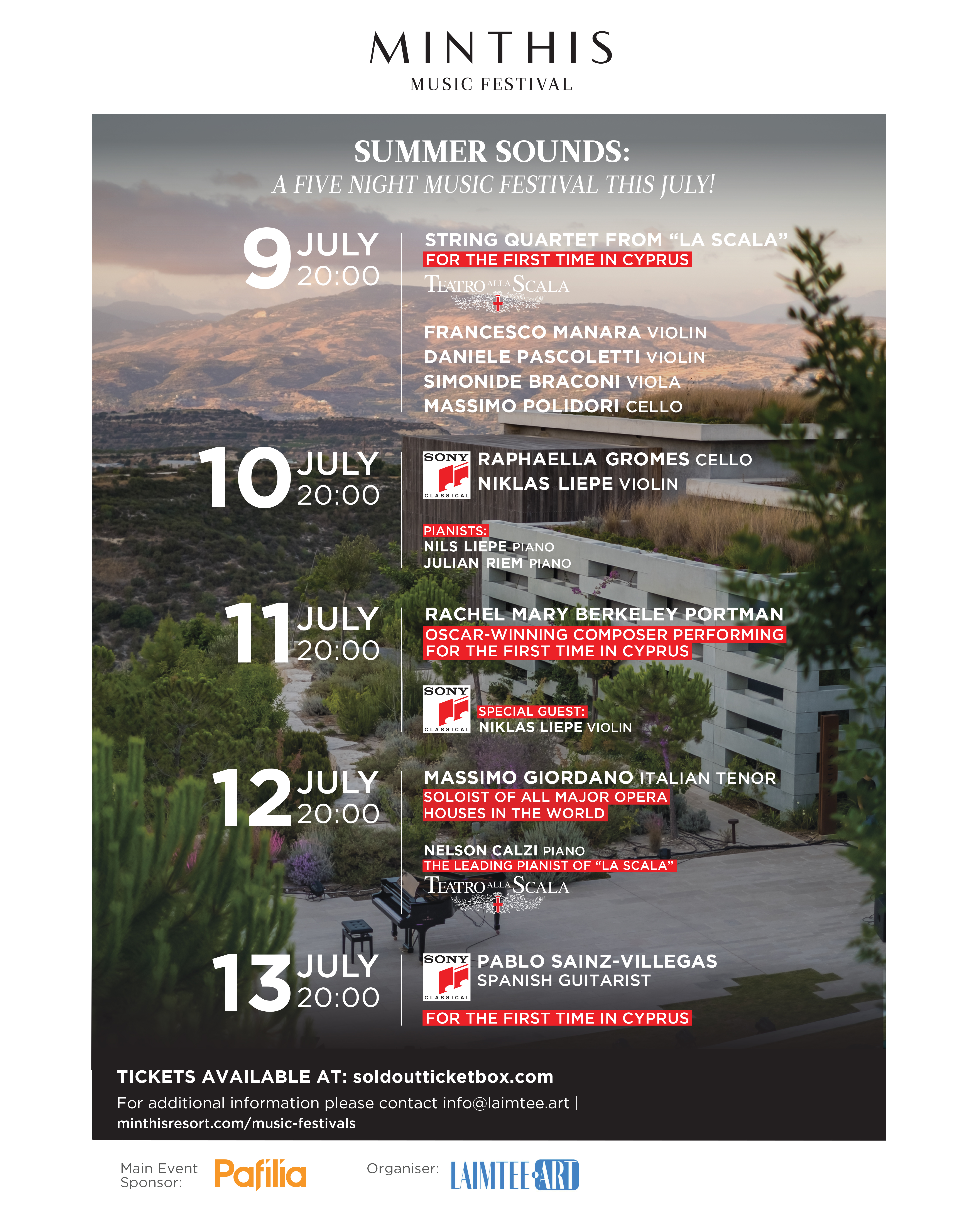 Σε μια εποχή που η τέχνη ψάχνει νέους τρόπους να αγγίξει τον άνθρωπο, το Minthis resort γίνεται ένα σύγχρονο σημείο συνάντησης. Αυτό το καλοκαίρι, η Κύπρος δεν φιλοξενεί απλά ένα μουσικό γεγονός — προσφέρει ένα ταξίδι μέσα στη μαγεία του ήχου, της φύσης και της δημιουργίας.