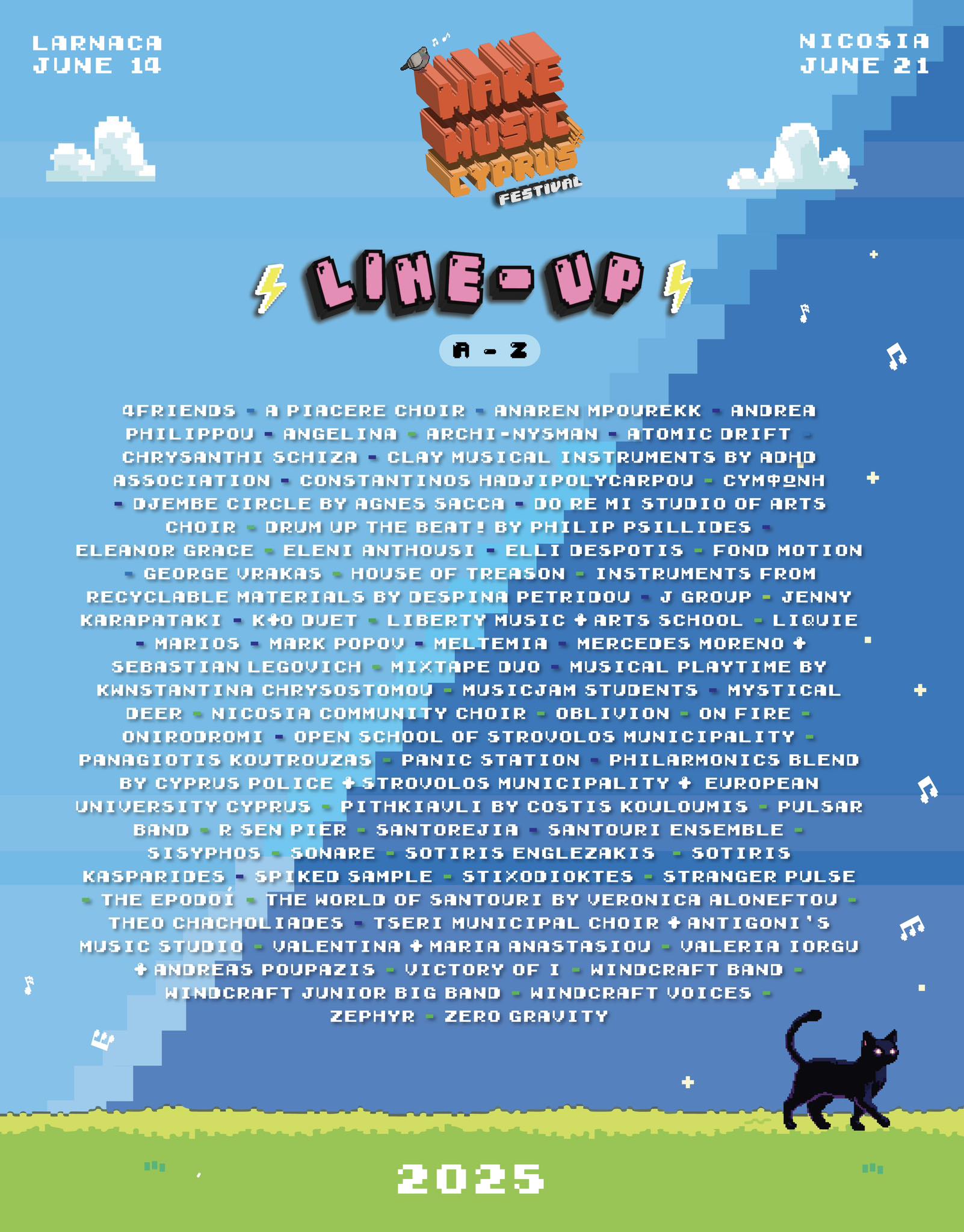 Το μεγαλύτερο φεστιβάλ μουσικής δρόμου σε αριθμό καλλιτεχνών στην Κύπρο επιστρέφει για 7η συνεχόμενη χρονιά στη Λευκωσία! Το Make Music Cyprus Festival, μέλος του διεθνούς πολιτιστικού δικτύου Make Music Day, φέρνει τη μουσική σε κάθε γωνιά της πόλης με 350+ μουσικούς, δεκάδες εθελοντές και χιλιάδες επισκέπτες! Παντού στο κέντρο της πόλης, σε περισσότερα από 10 σημεία. Το φεστιβάλ τελεί υπό την αιγίδα του Make Music Day, που γιορτάζεται παγκοσμίως σε περισσότερες από 120 χώρες. Όπως πάντα, η είσοδος είναι ελεύθερη.