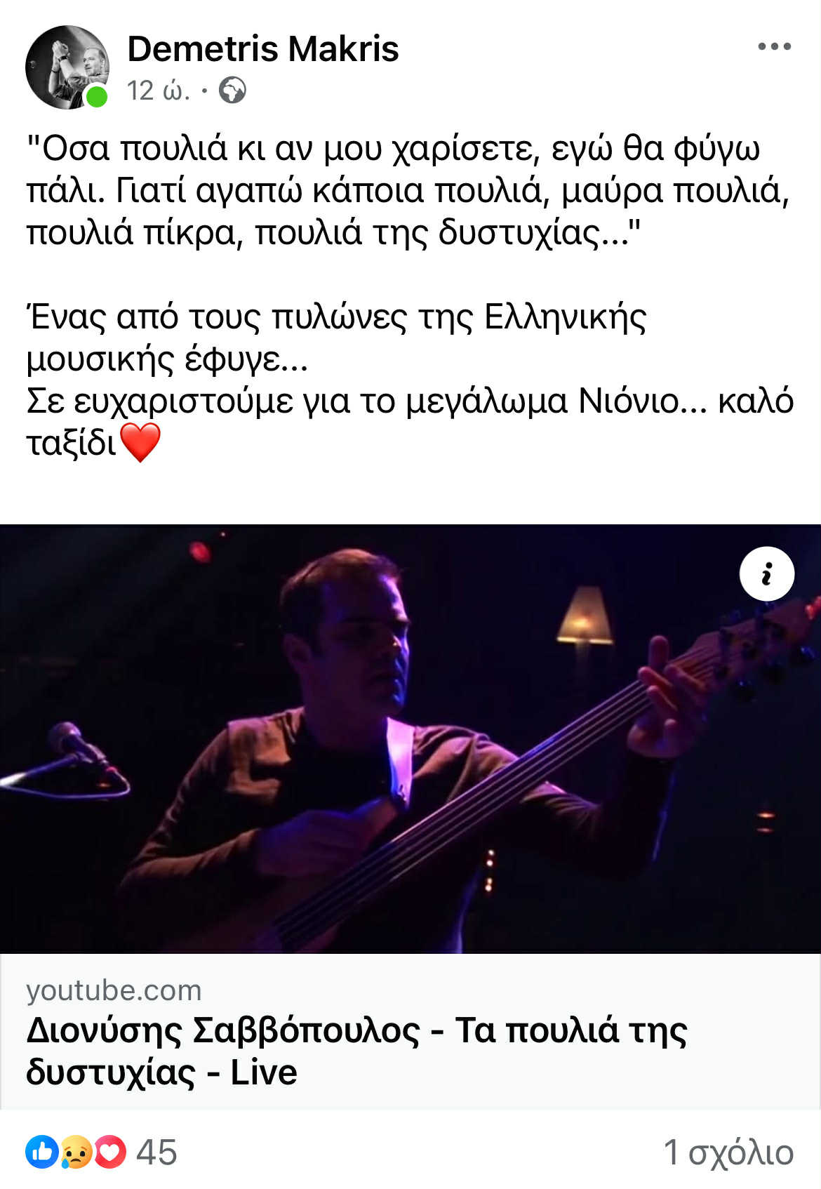 Εξ αφορμής της είδησης του θανάτου του, όλοι είχαν μια κουβέντα να πουν για το πώς τοποθετούν τον εαυτό τους μέσα στον μικρόκοσμο (για κάποιους φυσικά ήταν μεγάλος αυτός ο κόσμος) που έφτιαξε ο «Νιόνιος».