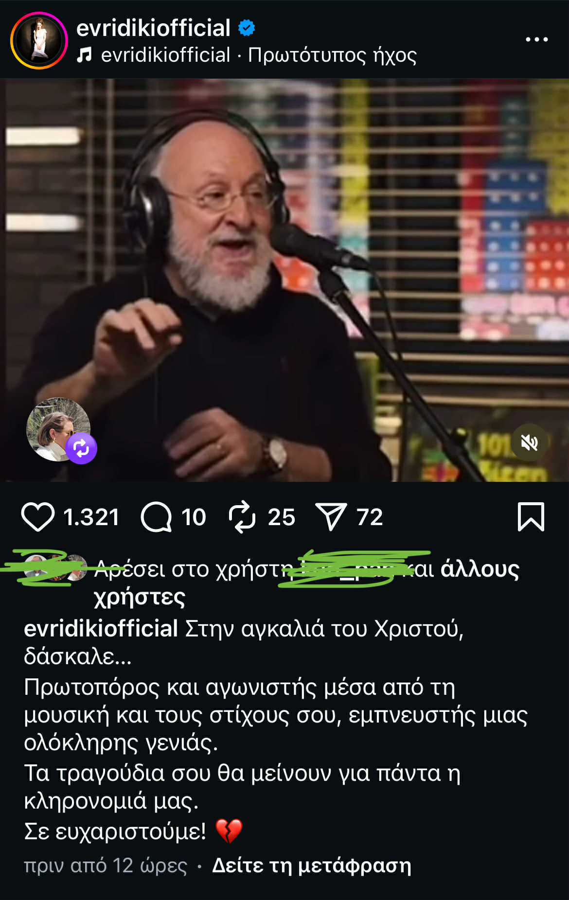 Πιο κάτω μαζέψαμε τις αναρτήσεις 20 γνωστών καλλιτεχνών από Ελλάδα και Κύπρο, ως επικήδειο για τον καλλιτέχνη που έχει δημιουργήσει ένα τόσο ευρείας γκάμας σημαντικό έργο.