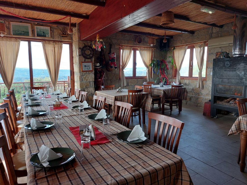 Σε έναν υπέροχο χώρο που σε μεταφέρει σε μια άλλη εποχή (ειδικά αν απολαύσεις το γεύμα σου στην εξωτερική αυλή με την κληματαριά), θα έχεις την ευκαιρία να δοκιμάσεις α λα καρτ ή μέσω του μεζέ πιάτα όπως το στιφάδο, ο μουσακάς, το βοδινό συκώτι, τα σουβλάκια, τα παϊδάκια, αλλά και το φημισμένο κλέφτικο που ψήνεται σε ξυλόφουρνο με βότανα της περιοχής.
