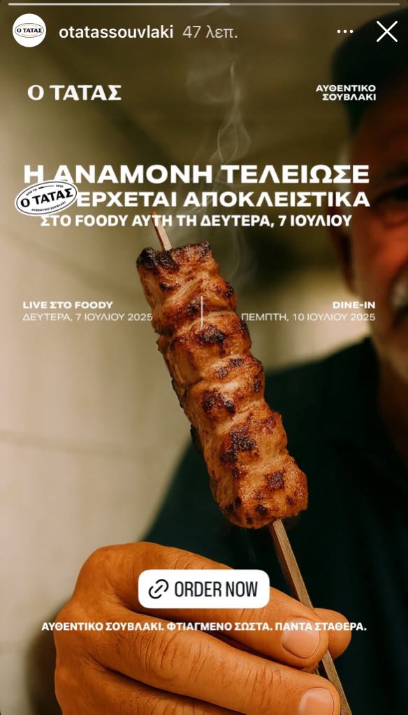 Σήμερα, Δευτέρα 7 Ιουλίου ξεκίνησε να δέχεται παραγγελίες μέσω Foody, ενώ από την Πέμπτη 10 Ιουλίου θα υποδέχεται κανονικά κόσμο στο μαγαζί για dine-in.