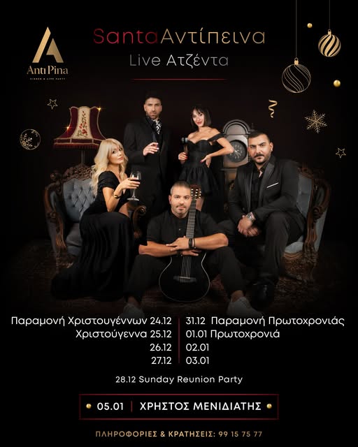 Ένα από τα πιο ζωντανά γιορτινά προγράμματα με εμφανίσεις από Έλενα Ανδρέου, Ανδρέα Ναπολέοντα, Βασίλη Ιωάννου, Εύη Χαραλάμπους και Κυριάκο Μάρκου, από 24–27 & 31 Δεκεμβρίου, 1–3 Ιανουαρίου.
