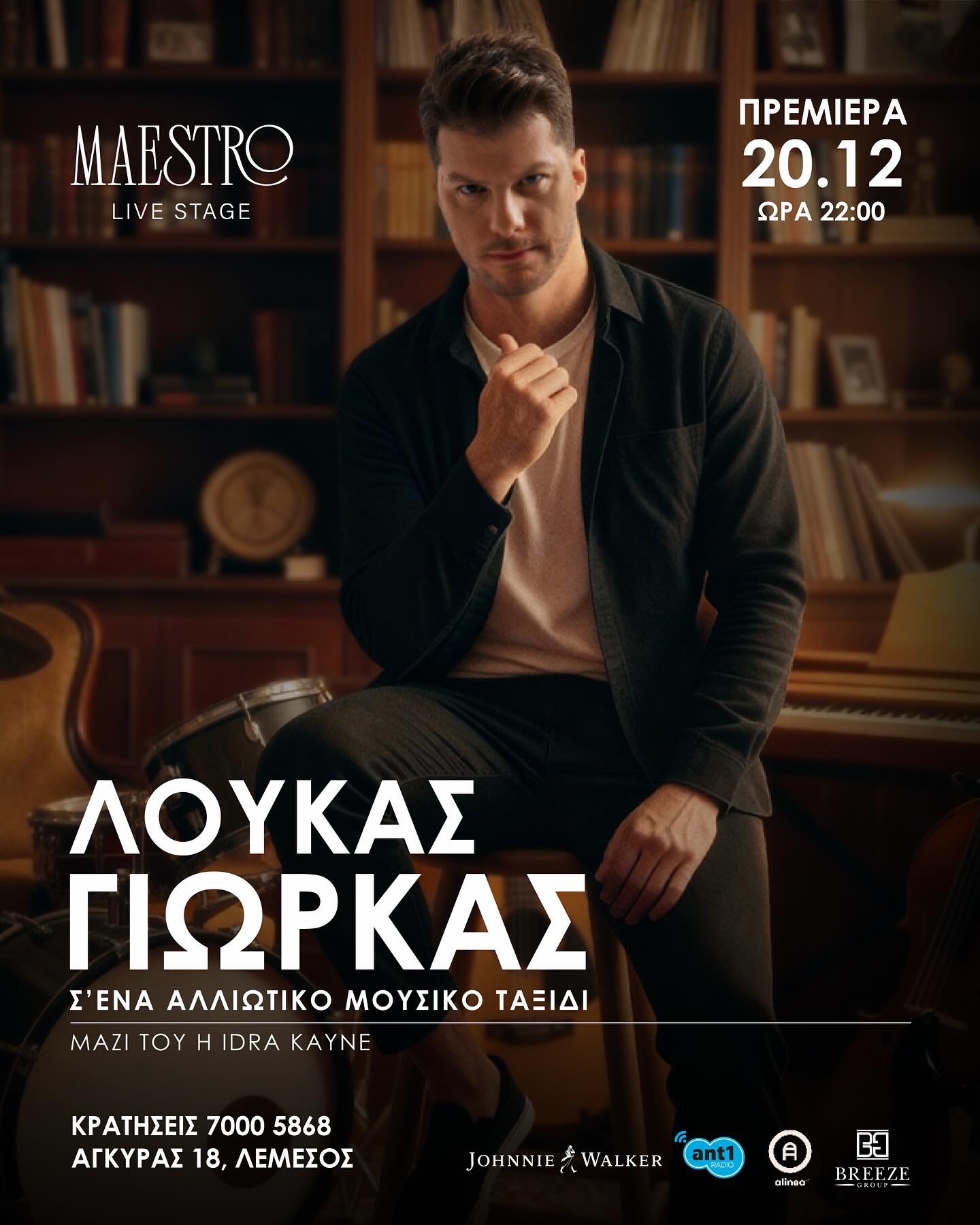 Ο Λούκας Γιώρκας αναλαμβάνει το μικρόφωνο στις 20 & 27 Δεκεμβρίου και 3 Ιανουαρίου, προσφέροντας τρεις βραδιές με ενέργεια και δυνατές ερμηνείες.