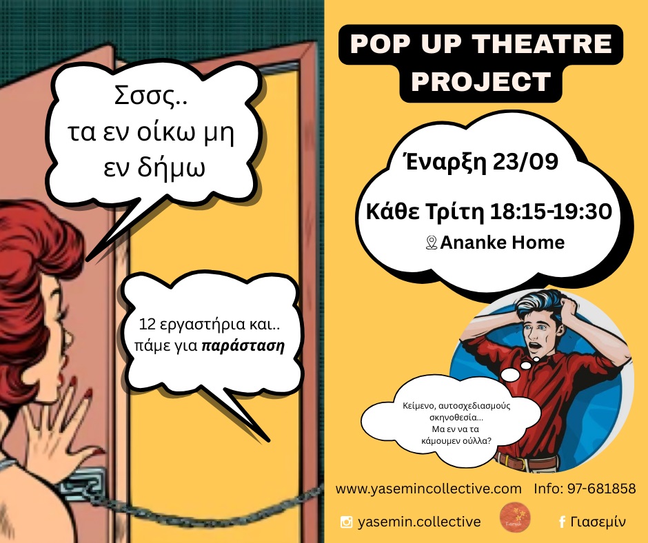 Η Ομάδα Γιασεμίν επιστρέφει με νέα έμπνευση και ενέργεια, εγκαινιάζοντας έναν νέο κύκλο του Pop-Up Theatre Project, ένα εγχείρημα που ξεκίνησε το 2023 και αγκαλιάστηκε από το κοινό.