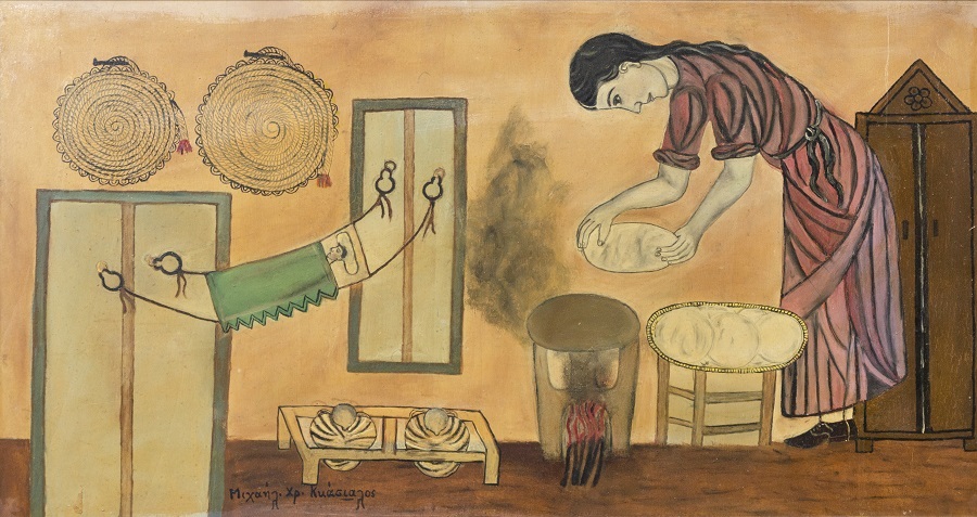 ΛΕΥΚΩΣΙΑ – Στο συναρπαστικό έργο (‘Interior with Woman Kneading’, Εκτιμώμενη τιμή €23 000 - €45 000), ο Μιχαήλ Κάσιαλος (1885-1974) αποδίδει φόρο τιμής στη καθημερινότητα της ποχής του μεταμορφώνοντας το παραδοσιακό ζύμωμα του ψωμιού σε ένα υπέροχο οπτικό αφήγημα. Η Γυναίκα που Ζυμώνει εκπέμπει μια κομψότητα, τονίζοντας την αιώνια ομορφιά της οικιακής ζωής στην τέχνη. Η γυναικεία μορφή μοιάζει σχεδόν αρχαϊκή με τις κυματιστές πτυχώσεις του φορέματος της να αντανακλούν μια εσωτερική ενέργεια πού έρχεται σε αντίθεση με την παγιωμένη στατικότητα των γύρω αντικειμένων. Έτσι, με χρώμα μεστό και απαλό που διαχέεται και ρέει στο χώρο ενοποιώντας τις επιμέρους μορφές ο πίνακας αυτός αποπνέει μια έντονη γοητεία. Η Γυναίκα που Ζυμώνει είναι ένα από πέντε έργα του κορυφαίου ναϊφ της κυπριακής ζωγραφικής που θα δημοπρατήσει η Cypria την Τετάρτη, 13 Δεκεμβρίου 2023 στις 7:00 μ.μ., στον χώρο της Gallery K στη Λευκωσία. Ανάμεσα τους, το