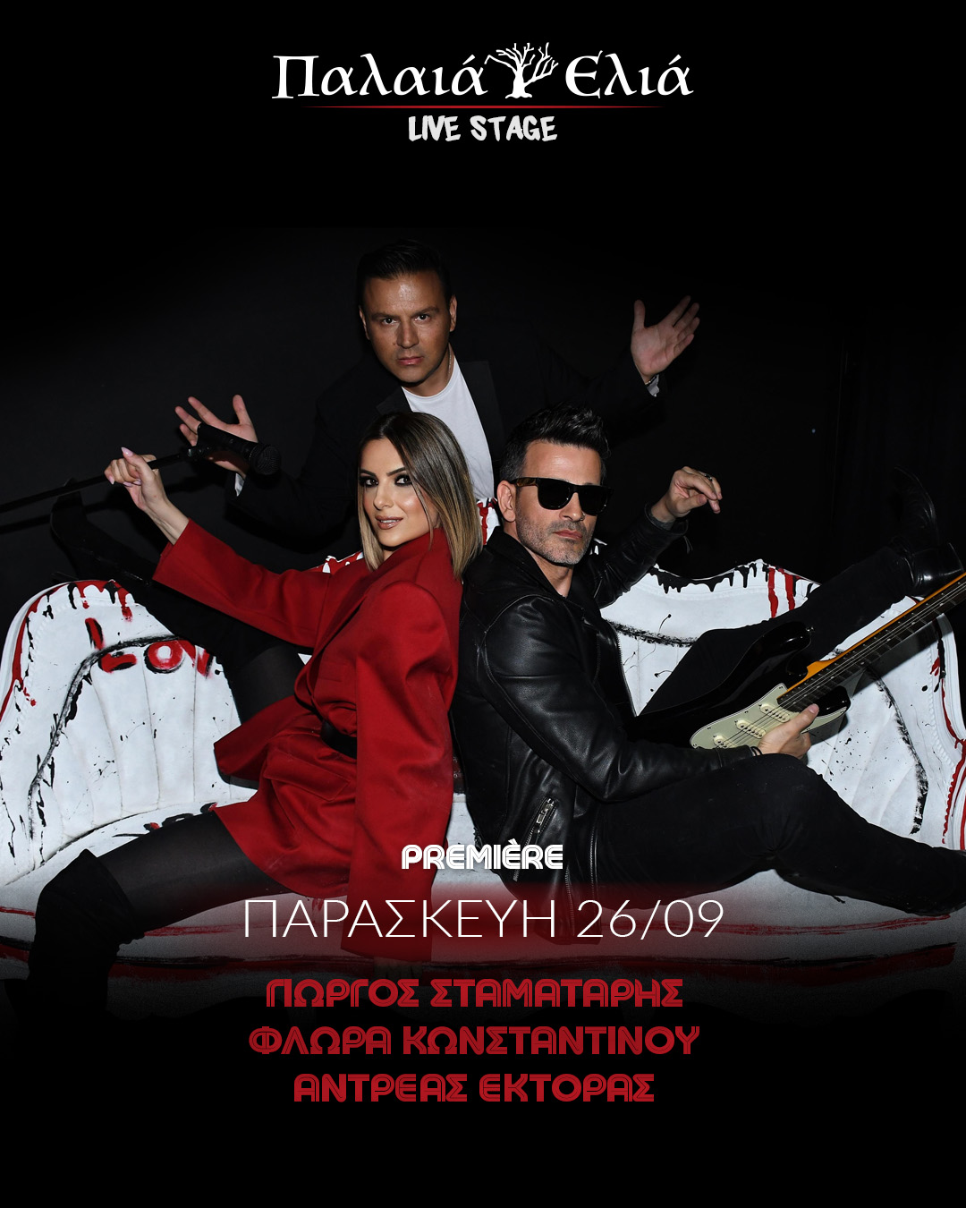 Συγκεκριμένα, την Παρασκευή 26 Σεπτεμβρίου το Live Stage της Παλαιάς Ελιάς ζωντανεύει με το εκρηκτικό σχήμα που απαρτίζεται από τους Γιώργο Σταματάρη, Φλώρα Κωνσταντίνου και Αντρέα Έκτορα και η αυλαία ανοίγει με ενέργεια, ρυθμό και λάμψη!