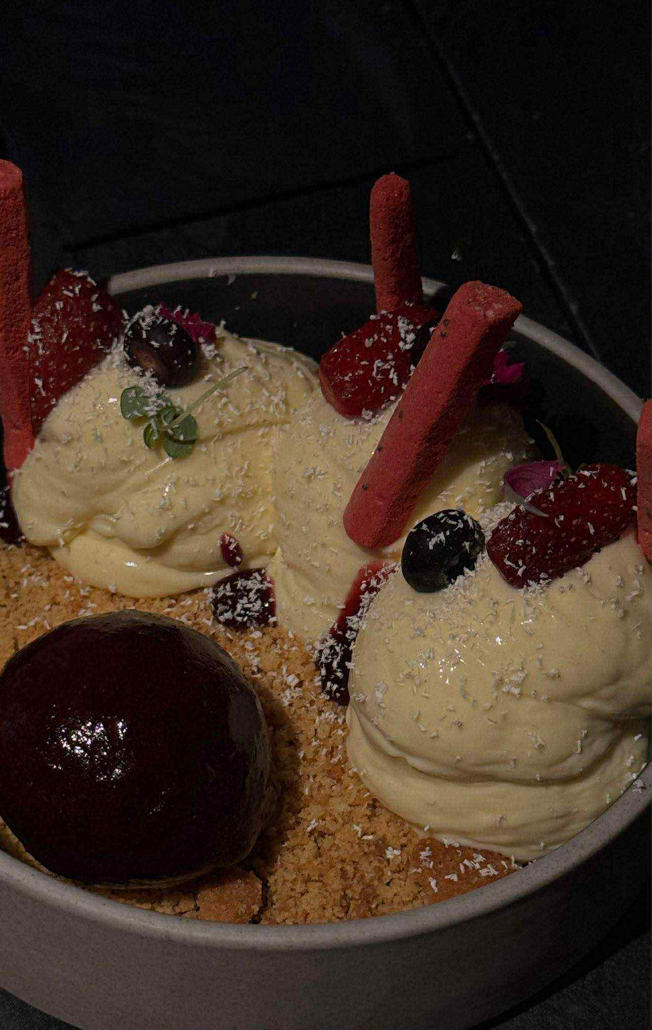 Στο νέο sharing menu του Ρους, στο νέο location, στο κέντρο της πόλης, το οποίο προτείνει σύγχρονη κυπριακή κουζίνα στο πλαίσιο ενός δυνατού γαστρονομικού sharing experience, θα βρεις μεταξύ άλλων και τρία υπέροχα γλυκά. Ως παρουσίαση, πέραν από τη γεύση, θα λατρέψει την πάβλοβα. Ένα φίνο γλυκό με γαλλική μαρέγκα, κομπόστα μάγκο, κρέμα βανίλιας και σορμπέ ανανά με κόλιανδρο.
