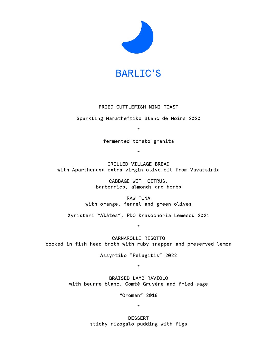 Food & Wine Pairing στο pop-up μαγειρικής Barlic's, με ένα μενού γευσιγνωσίας ειδικά σχεδιασμένο για το event, συνδυασμένο με τα εξαιρετικά κρασιά του Vlassides Winery.