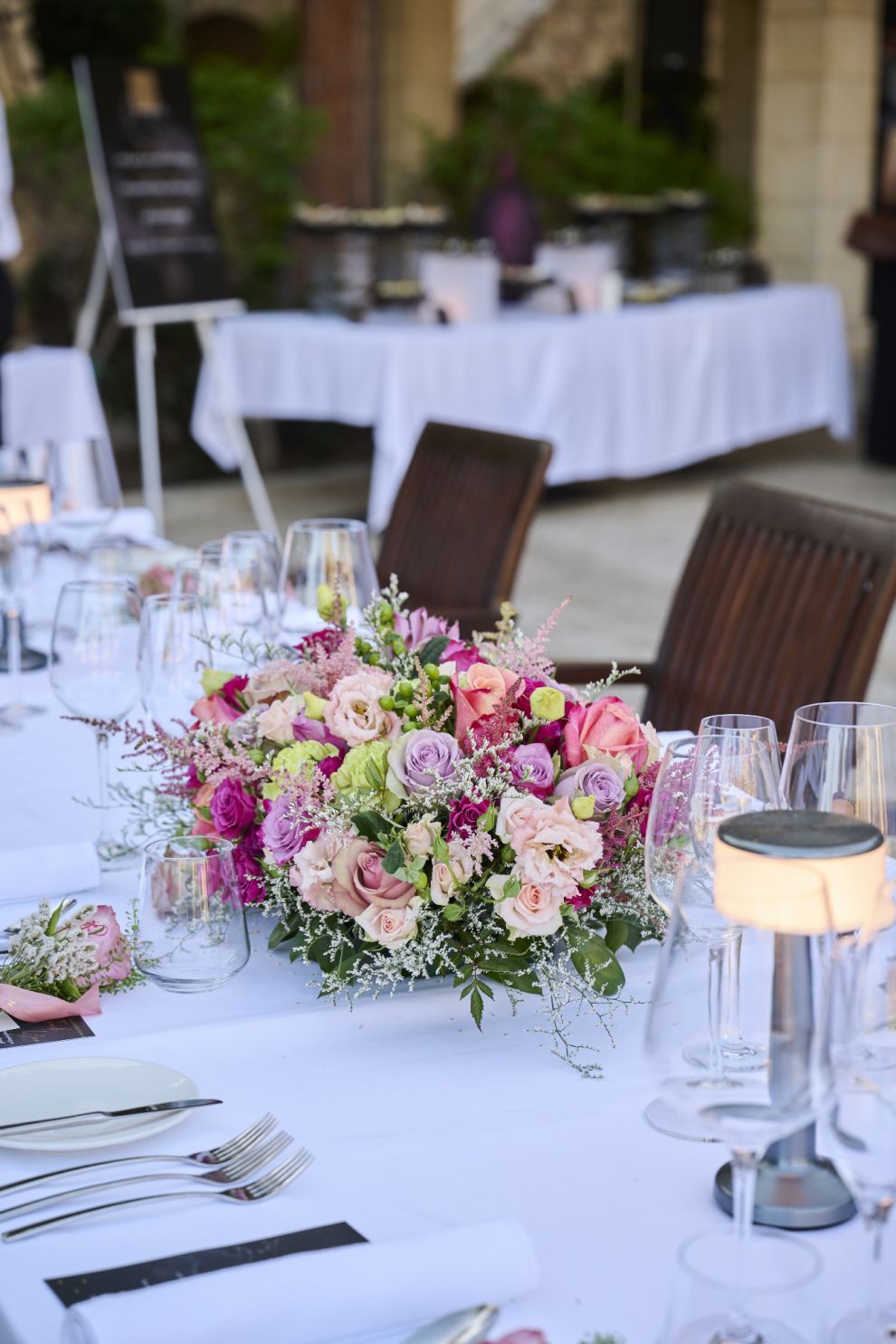 Κατάλευκα τραπεζομάντιλα διακοσμημένα με κομψά λουλούδια σε αποχρώσεις του ροζ, ροδακινί και μοβ περίμεναν τους επισκέπτες, μαζί με ένα ατομικό τριαντάφυλλο για τον κάθε ένα, στα πέταλα του οποίου αναγραφόταν η λέξη «Thank you», όλα με ευγενική προσφορά της Speaking Roses.