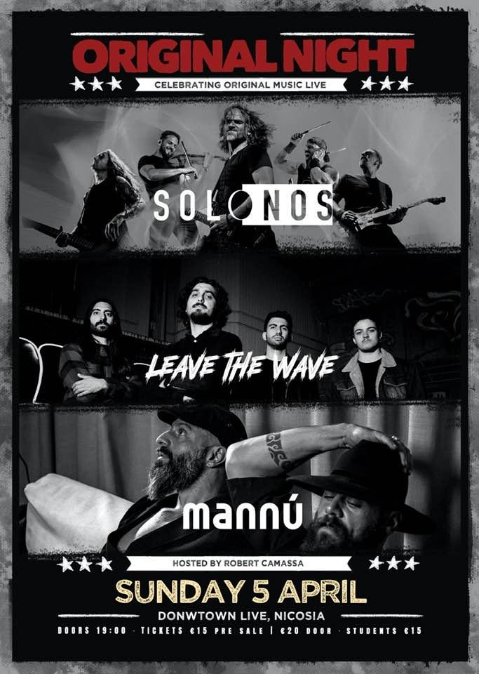 Το 'Original Night' είναι ένα επιμελημένο live αφιερωμένο αποκλειστικά στην πρωτότυπη μουσική δημιουργία στο Downtown Live, Λευκωσία. Στη σκηνή θα εμφανιστούν οι Solonos, Leave the Wave και Mannu, παρουσιάζοντας δικό τους υλικό μέσα από δομημένα σετ με έμφαση στη ζωντανή απόδοση.