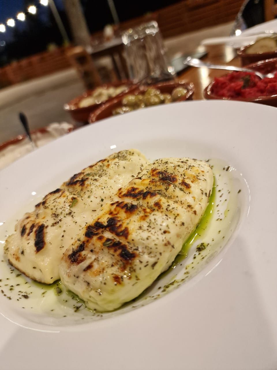 Τα ζεστά ορεκτικά περιλαμβάνουν αιγοπρόβειο φρέσκο χαλούμι (ολόκληρο) σερβιρισμένο με μαρμελάδα μόσφιλο, σαλιγκάρια ταβά, κολοκυθάκια τηγανιτά με σως γιαουρτιού και σκόρδο, τραγανούς ανθούς με χυλό σερβιρισμένους με γιαούρτι, αλλά και τηγανιτές φρέσκιες πατάτες με το φύλλο.