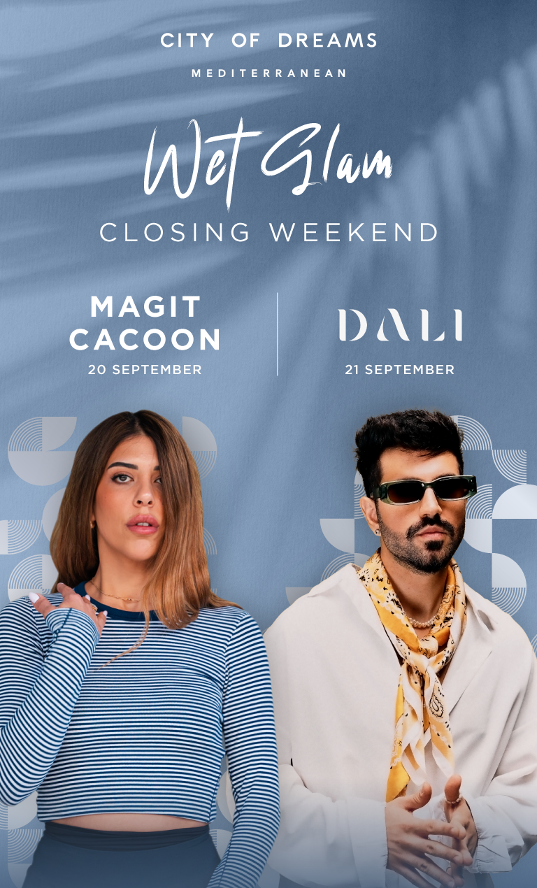 Κυριακή, 21 Σεπτεμβρίου – Το μεγάλο φινάλε ανήκει στον εκρηκτικό DJ Dali, που υπόσχεται να κλείσει το Wet Glam με τον πιο εντυπωσιακό και αξέχαστο τρόπο.