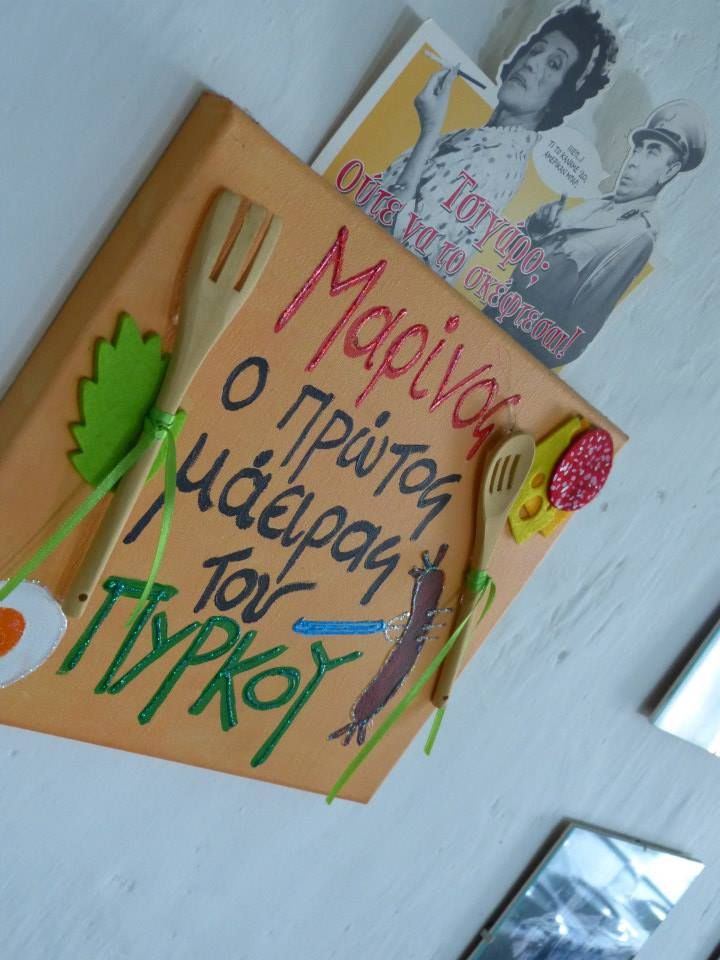 Προσφέρει νόστιμη κυπριακή κουζίνα από ντόπια υλικά, δικής τους παραγωγής όπου είναι δυνατό. Τον χειμώνα περνάμε ευχάριστα στον εσωτερικό χώρο της ταβέρνας, με την ξυλόσομπα να ζεσταίνει τη σάλα, ενώ το καλοκαίρι τα τραπεζάκια γεμίζουν το ευρύχωρο μπαλκόνι που έχει θέα ολόκληρο το χωριό και τους αμπελώνες, με τον ορίζοντα να εκτείνεται ως τη θάλασσα της Πάφου (περιοχή αεροδρομίου). Ωραία μαγειρευτά και δυνατή σχάρα, με σπεσιαλιτέ του μαγαζιού το κουνέλι στιφάδο και τους γεμιστούς ανθούς. Αξίζει να αναφέρουμε ότι η ταβέρνα στεγάζεται σε ένα κομμάτι του παλιού δημοτικού σχολείου!